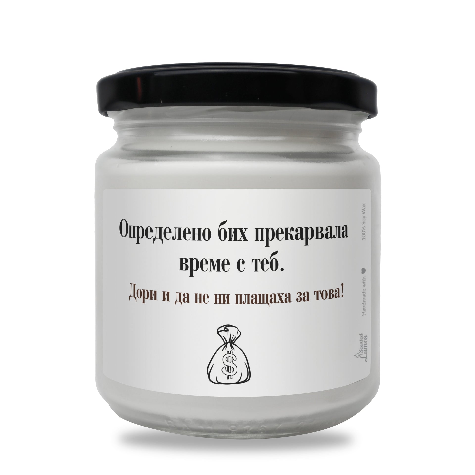 Оригинален подарък за Колежка с уникален дизайн: Определено бих прекарвала време с теб Ароматна Соева Свещ - Подарете с любов за 8-ми март, Рожден Ден, Имен Ден, годишнина или друг специален повод.