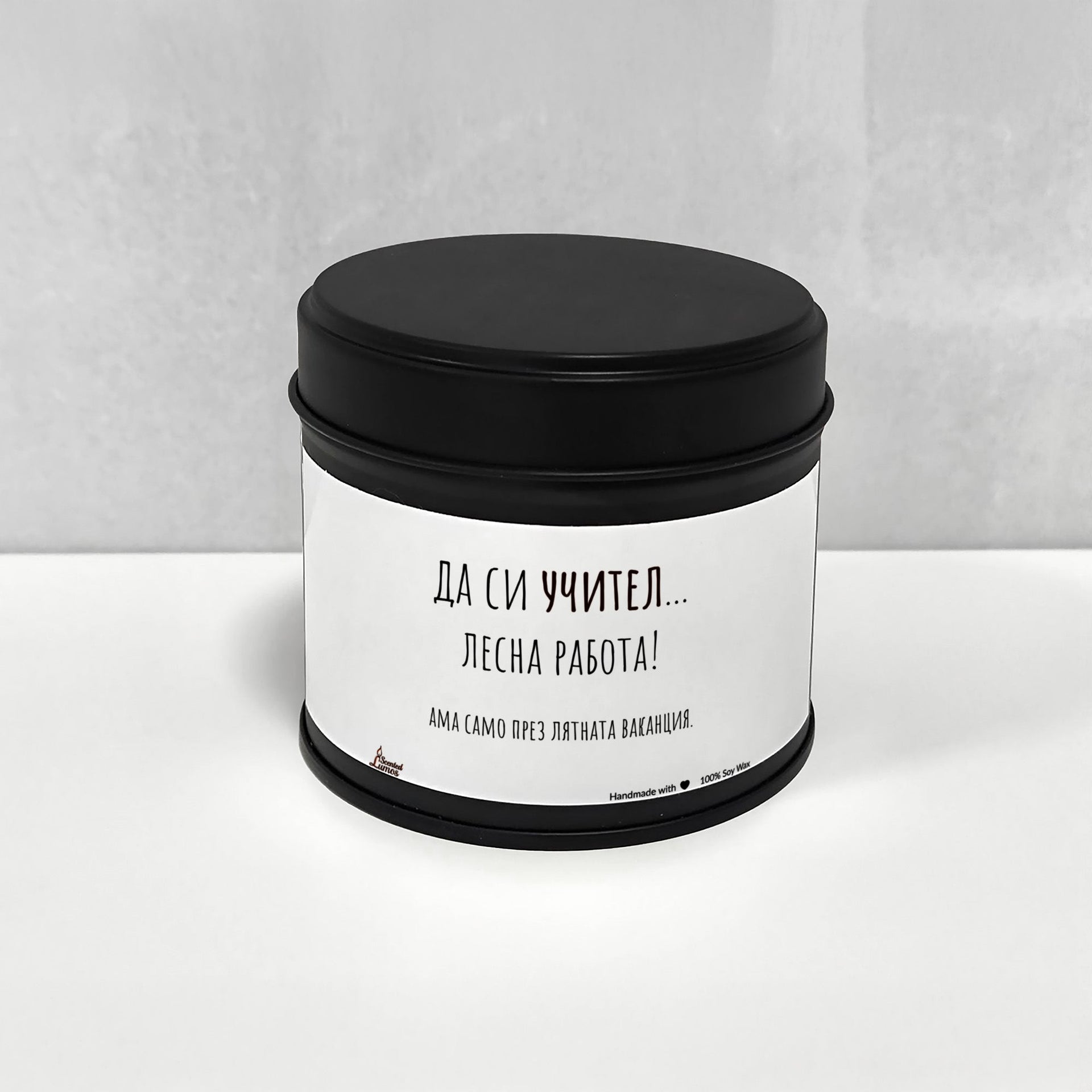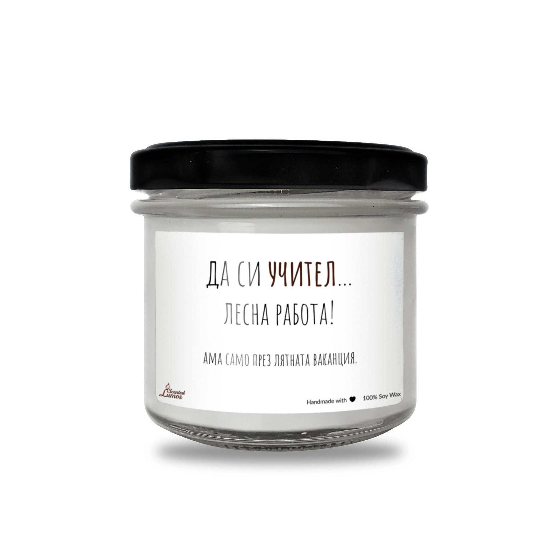 Оригинален подарък за Учител с уникален дизайн: Да си учител... лесна работа Ароматна Соева Свещ - Подарете с любов за 8-ми март, Рожден Ден, Имен Ден, годишнина или друг специален повод.