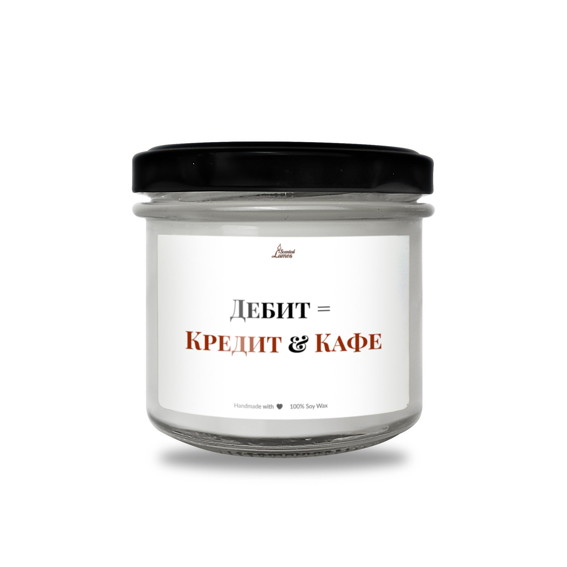 Дебит = Кредит & Кафе Ароматна соева свещ за счетоводител