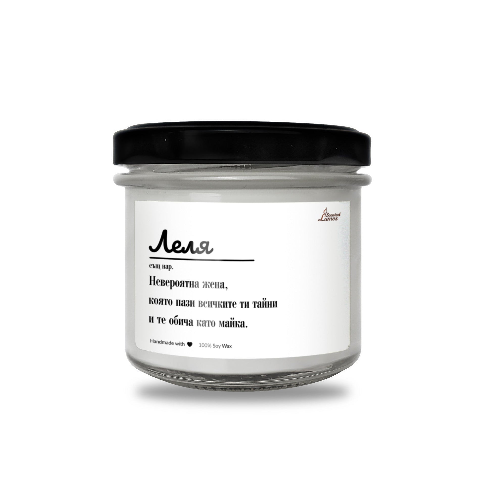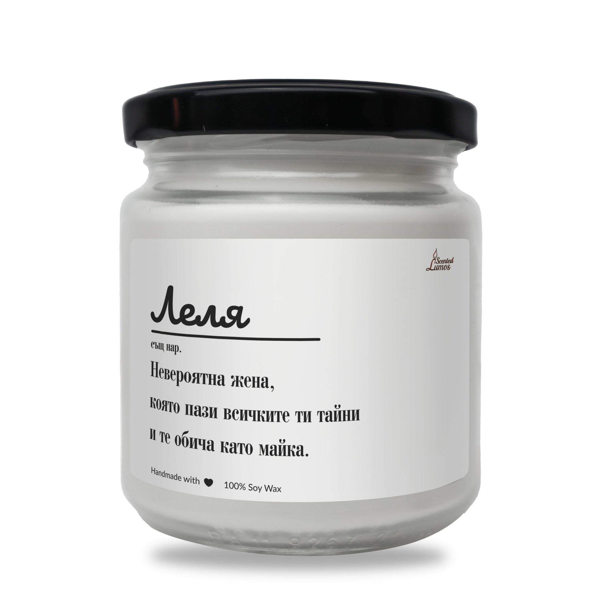 Оригинален подарък за Леля с уникален дизайн: Леля - Дефиниция Ароматна Соева Свещ - Подарете с любов за 8-ми март, Рожден Ден, Имен Ден, годишнина или друг специален повод.