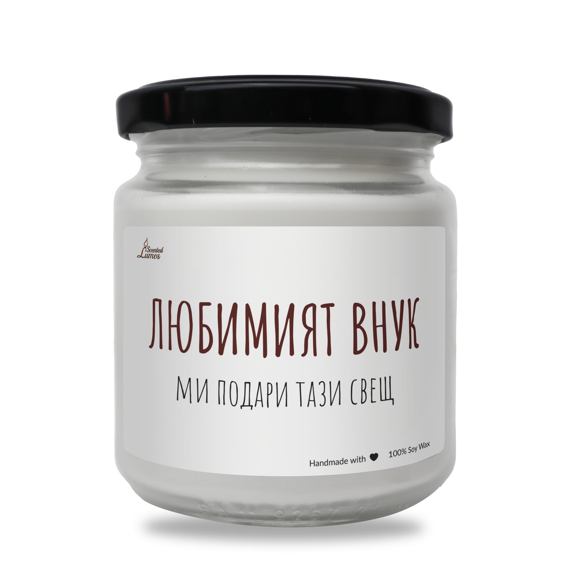 Оригинален подарък за баба с уникален дизайн: Любимият внук Ароматна Соева Свещ - Подарете с любов за 8-ми март, Рожден Ден, Имен Ден, годишнина или друг специален повод