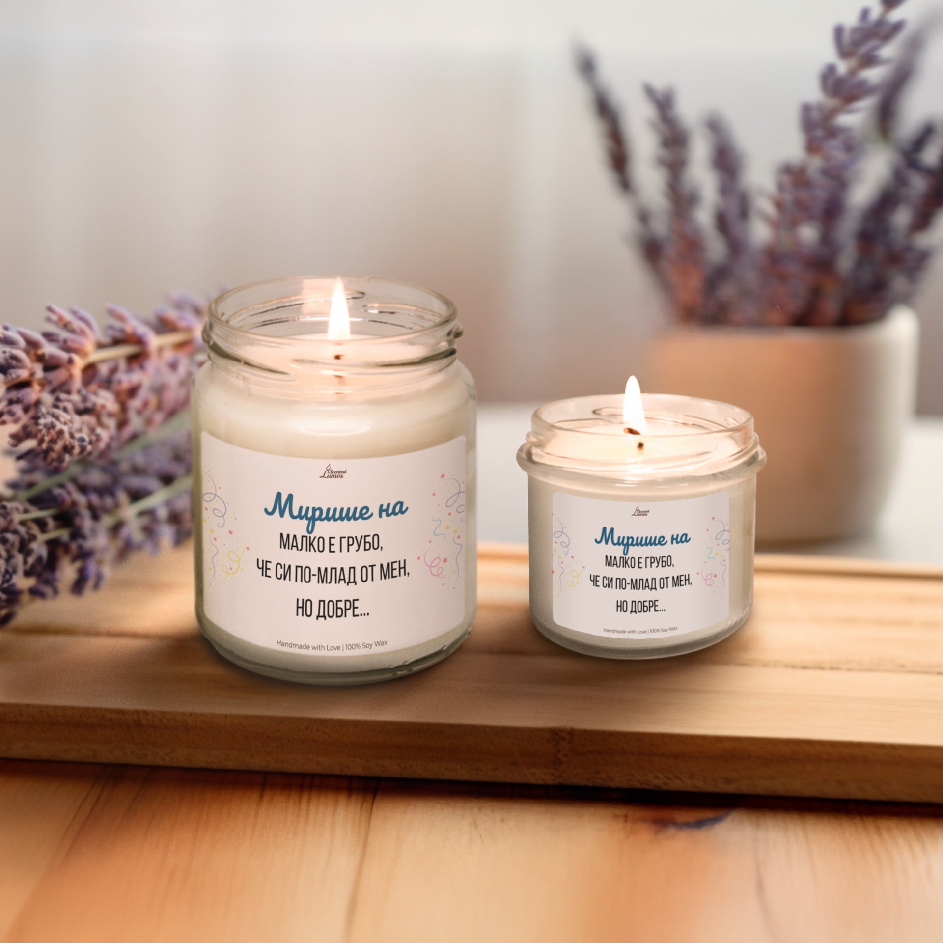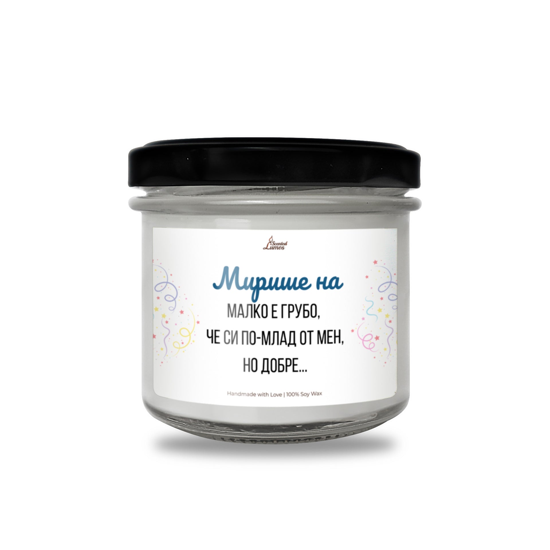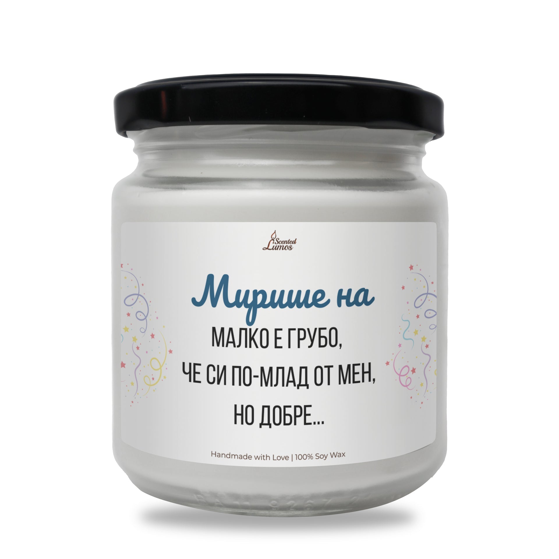 Малко е грубо, че си по-млад от мен, но добре... Ароматна соева свещ за рожден ден
