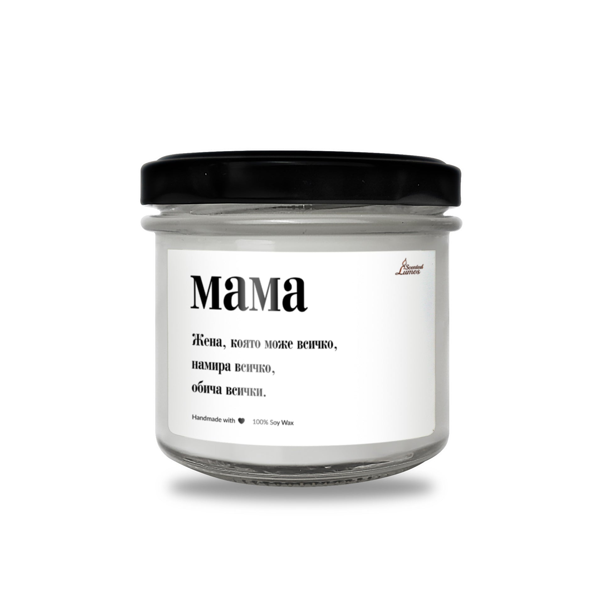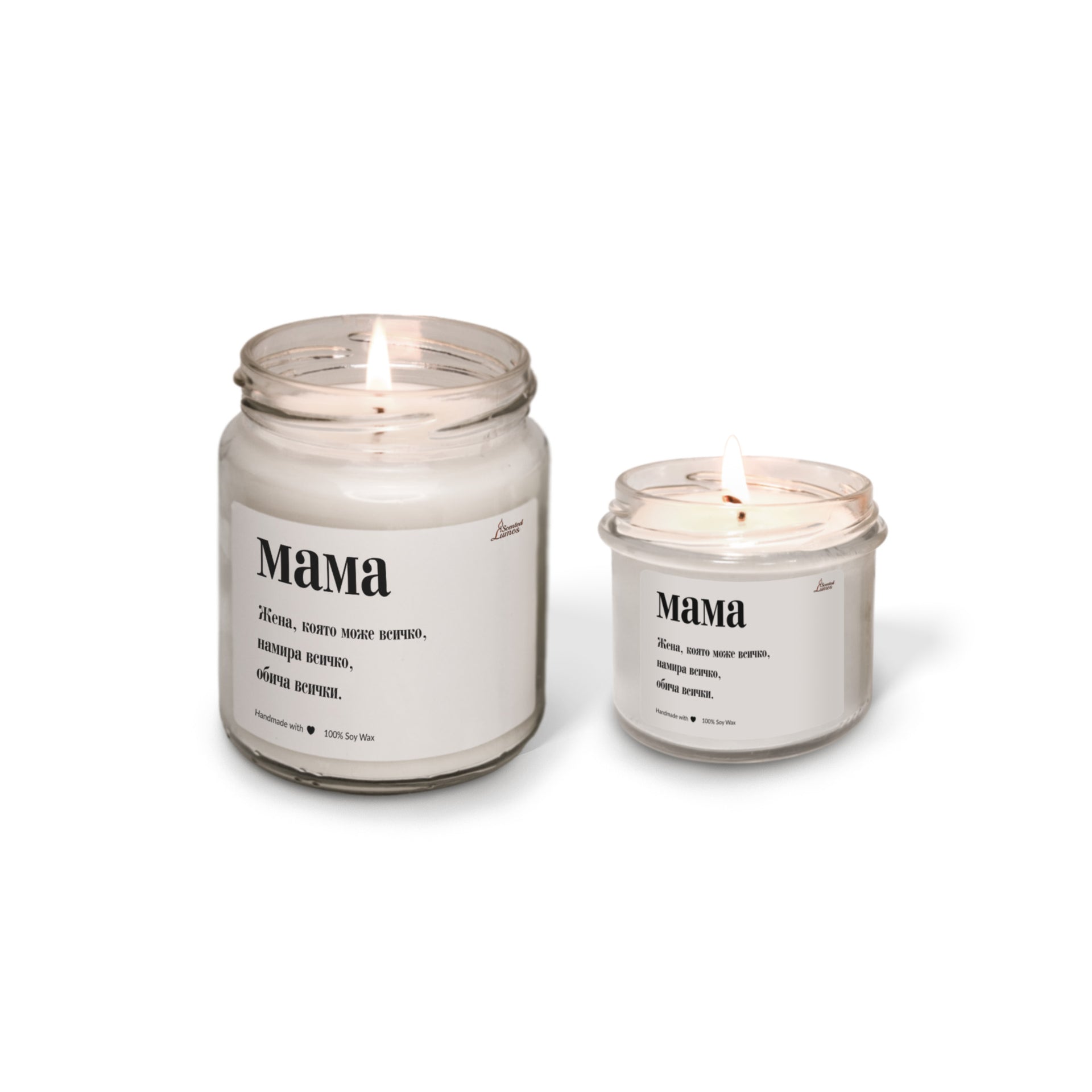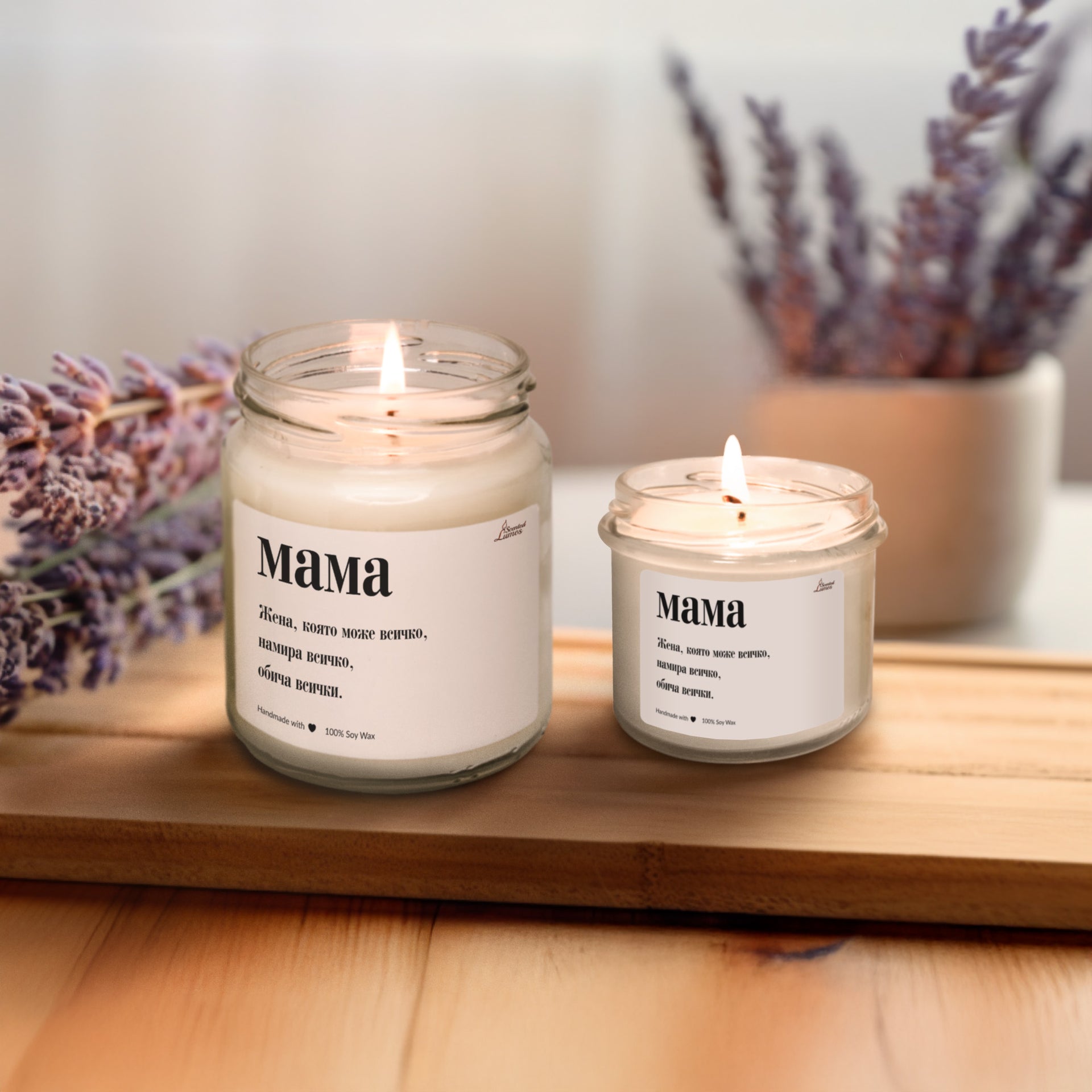Оригинален подарък за майка с уникален дизайн: Мама - намира всичко Ароматна Соева Свещ - Подарете с любов за 8-ми март, Рожден Ден, Имен Ден, годишнина или друг специален повод