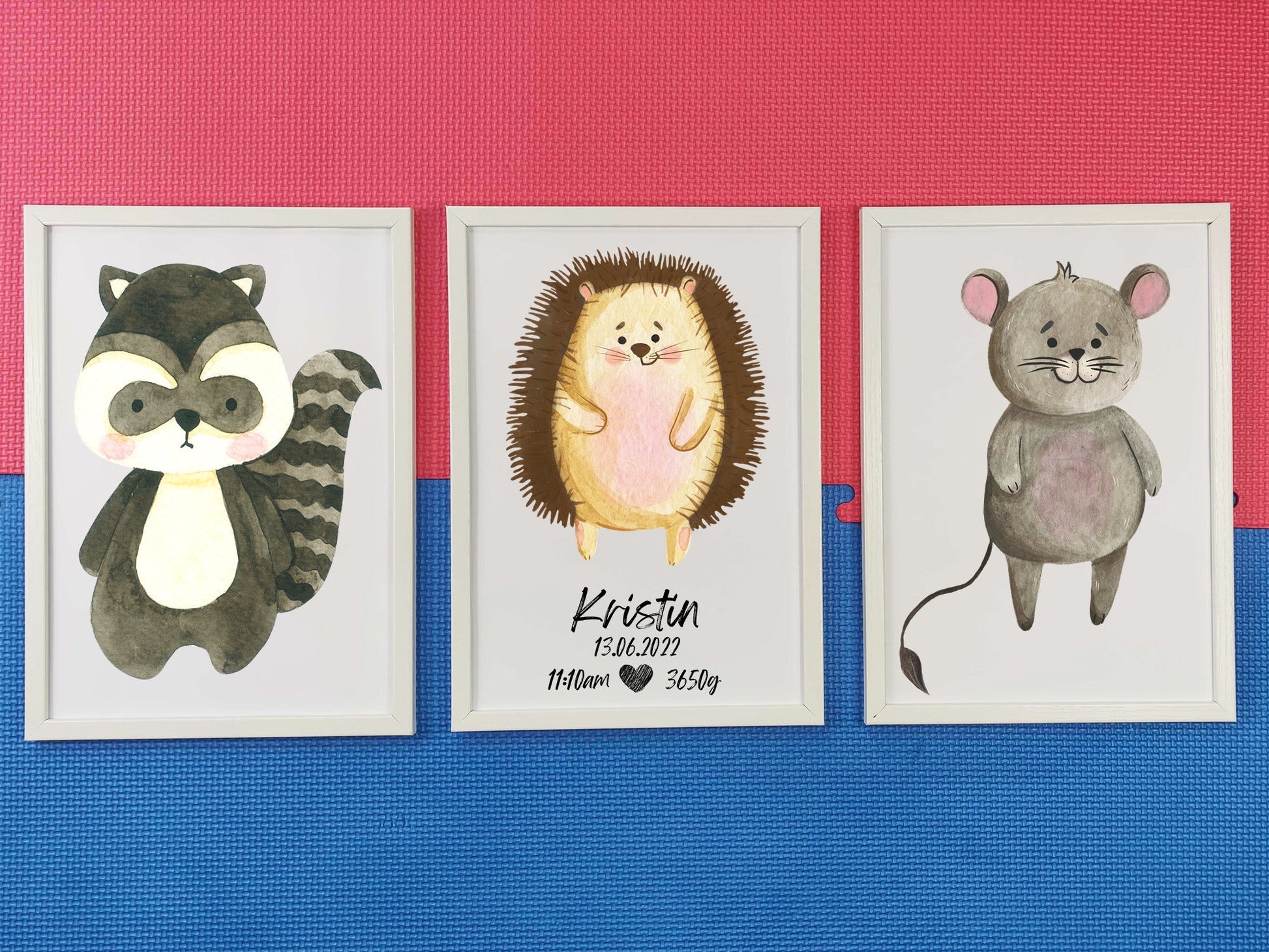 Висококачествени постери за декорация на детска стая с данните на бебето. Предлага се във формат А4 (21x30 см), върху дебела гланцирана хартия за постери.
