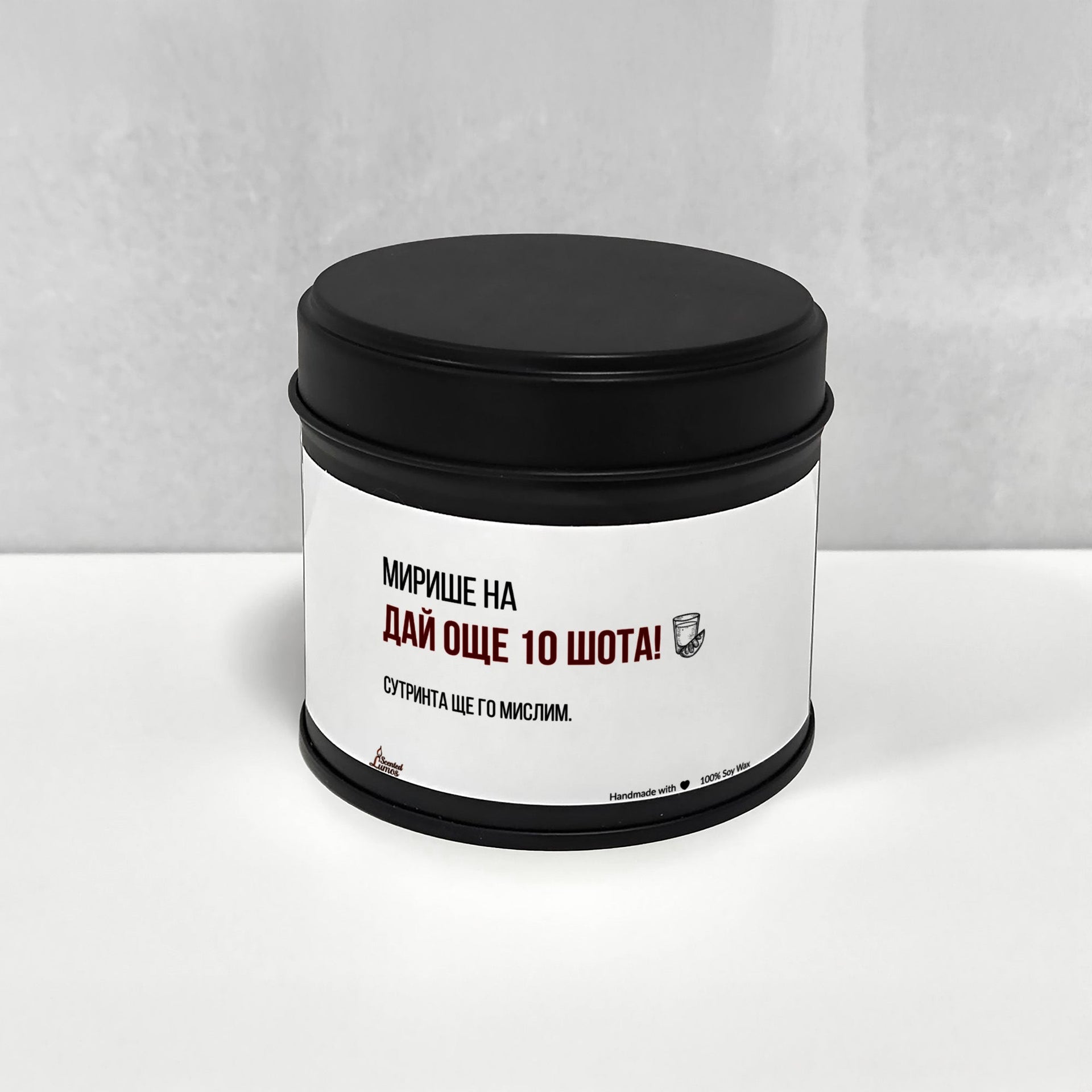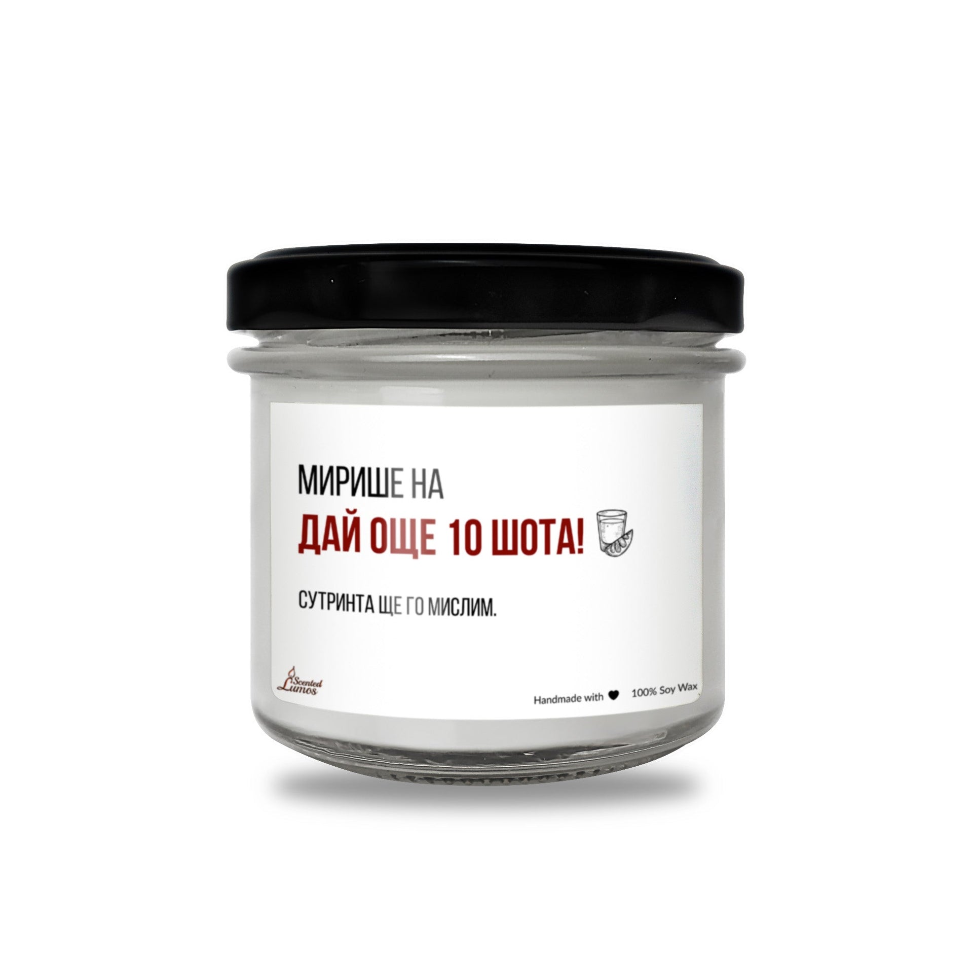 Оригинален подарък за Забавни с уникален дизайн: Мирише на Дай още 10 шота Ароматна Соева Свещ - Подарете с любов за 8-ми март, Рожден Ден, Имен Ден, годишнина или друг специален повод.