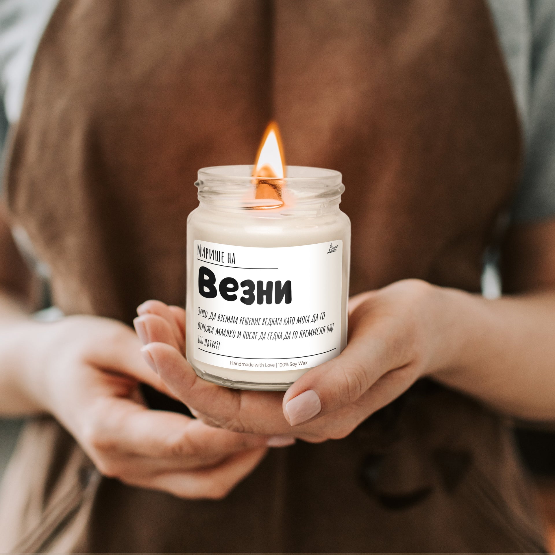 Оригинален подарък за Зодии с уникален дизайн: Мирише на Везни Ароматна Соева Свещ - Подарете с любов за 8-ми март, Рожден Ден, Имен Ден, годишнина или друг специален повод