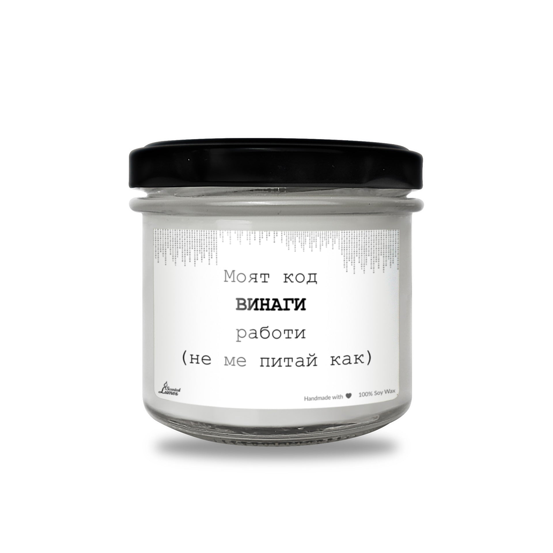 Моят код ВИНАГИ работи Ароматна соева свещ за програмист