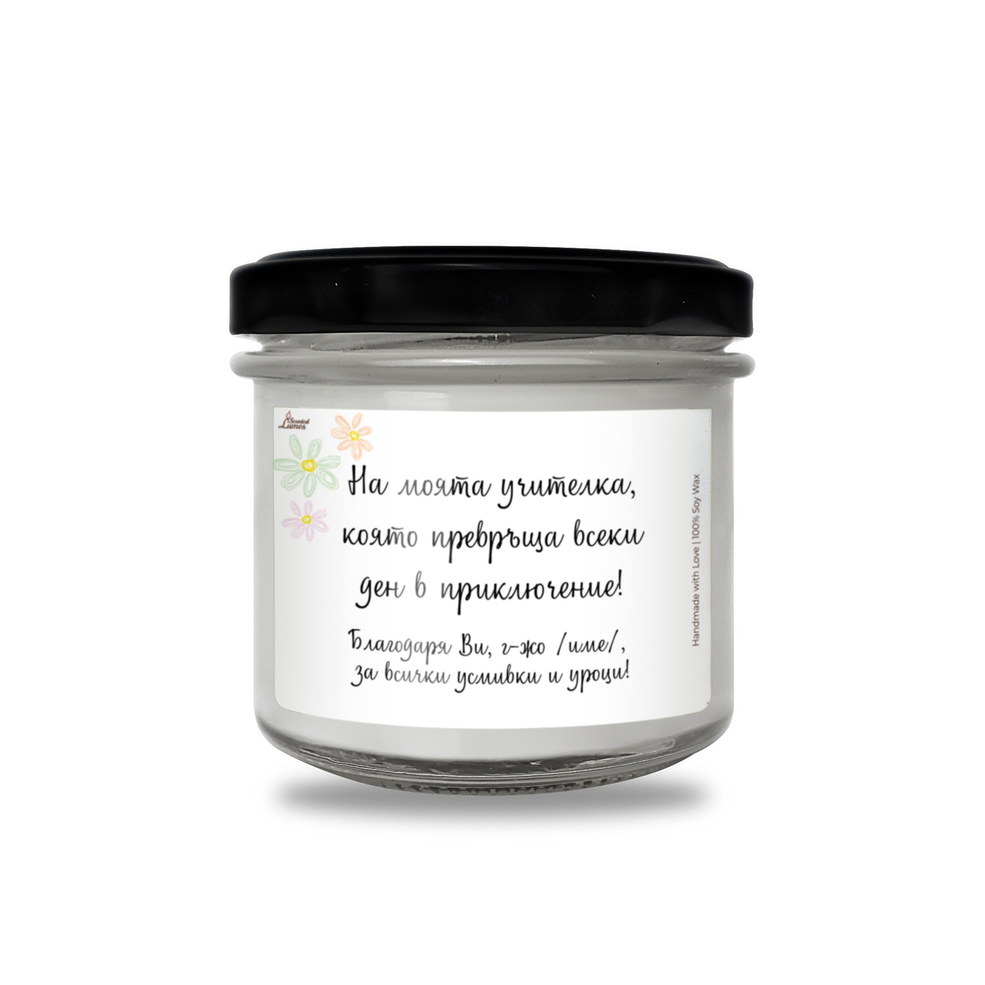 На моята учителка, която превръща всеки ден в приключение! Ароматна соева свещ