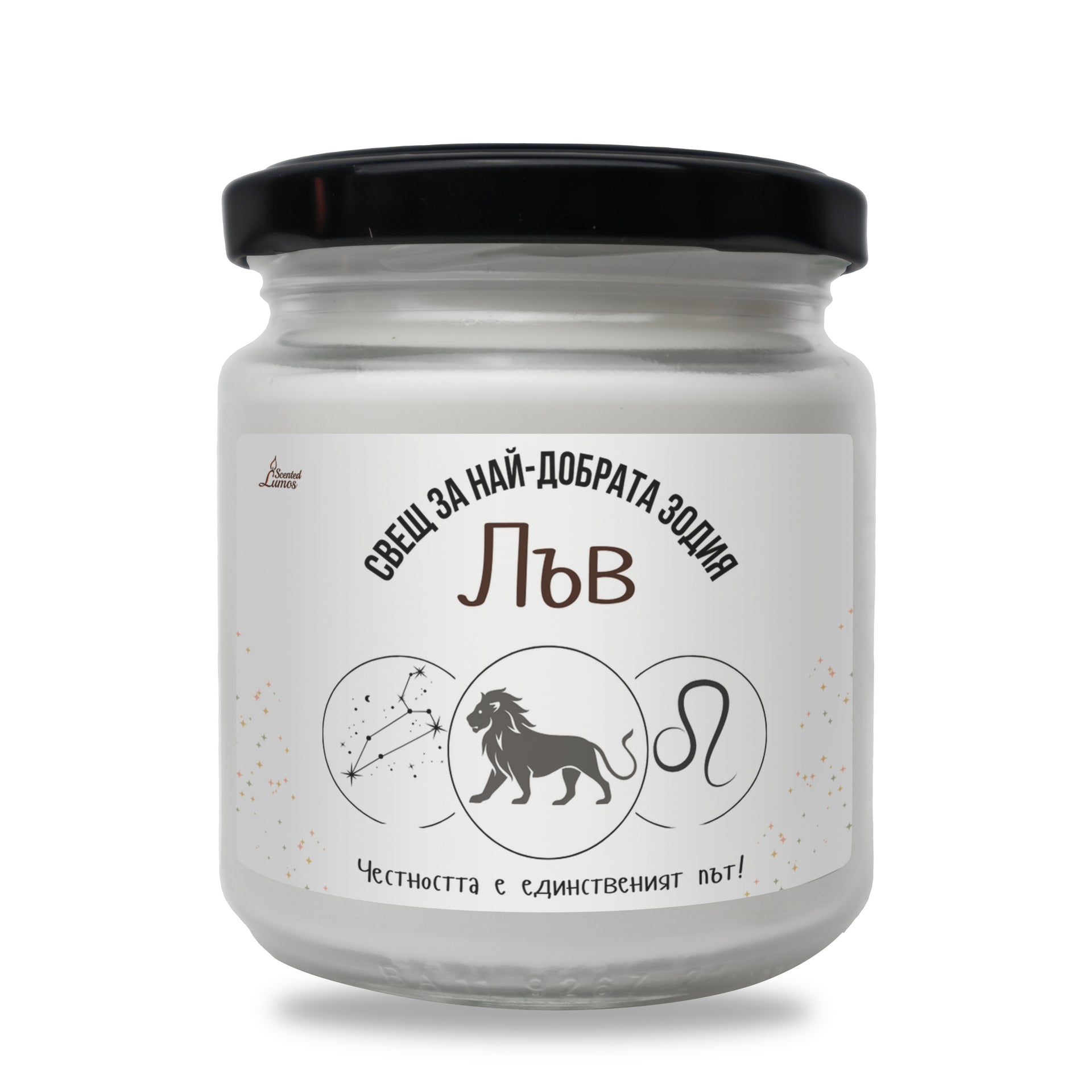 Оригинален подарък за Зодии с уникален дизайн: Най-добрата зодия Лъв Ароматна Соева Свещ - Подарете с любов за 8-ми март, Рожден Ден, Имен Ден, годишнина или друг специален повод.