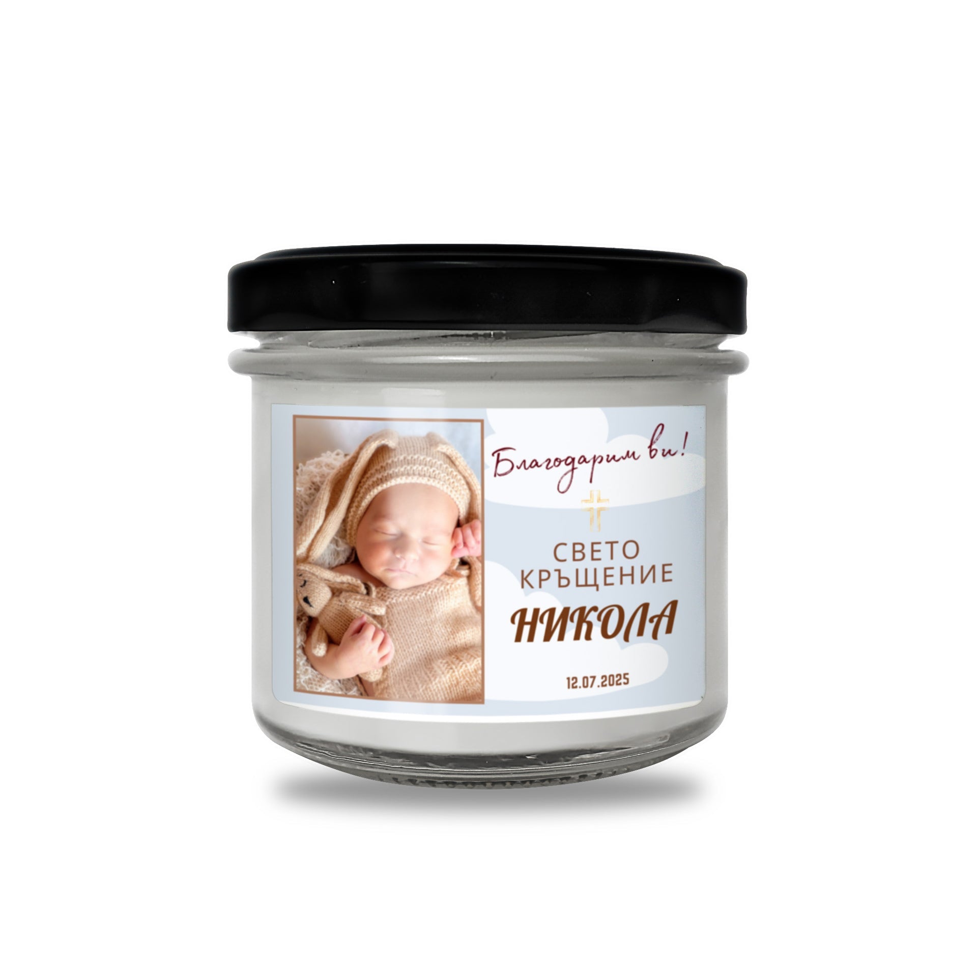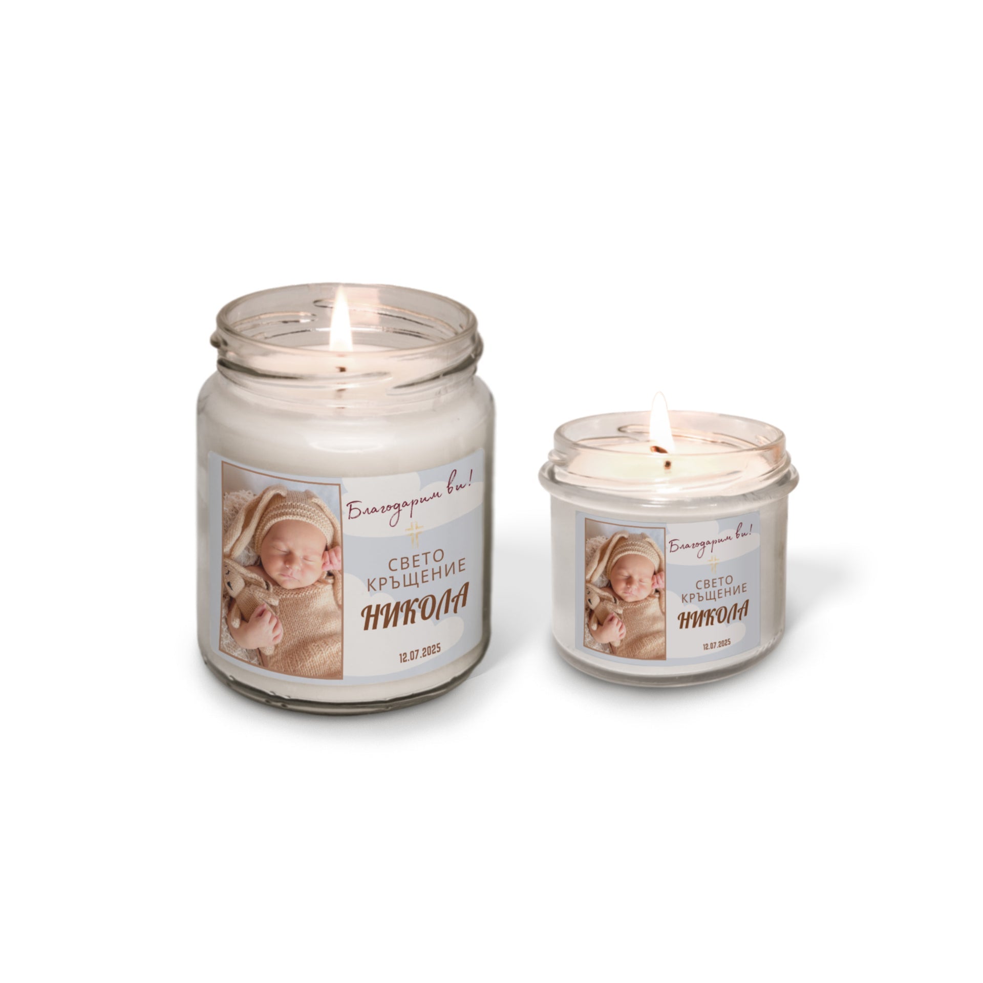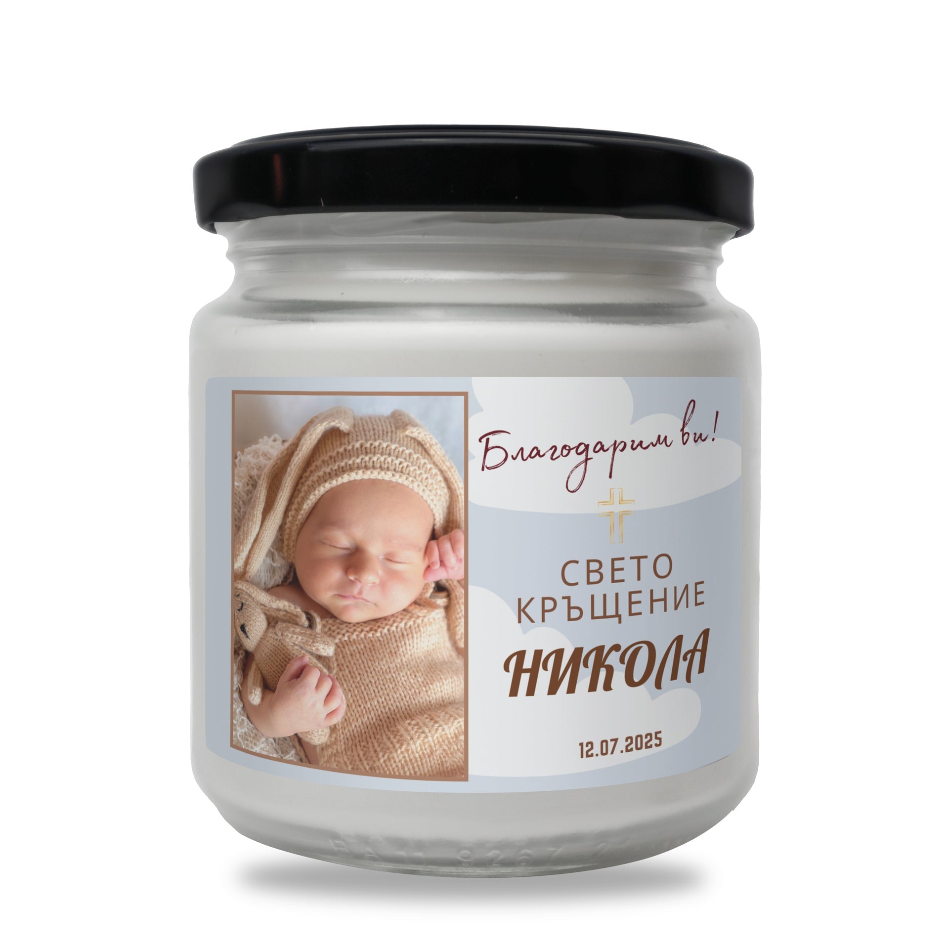 Подарък за кръщене Персонализирана Ароматна Соева Свещ със снимка