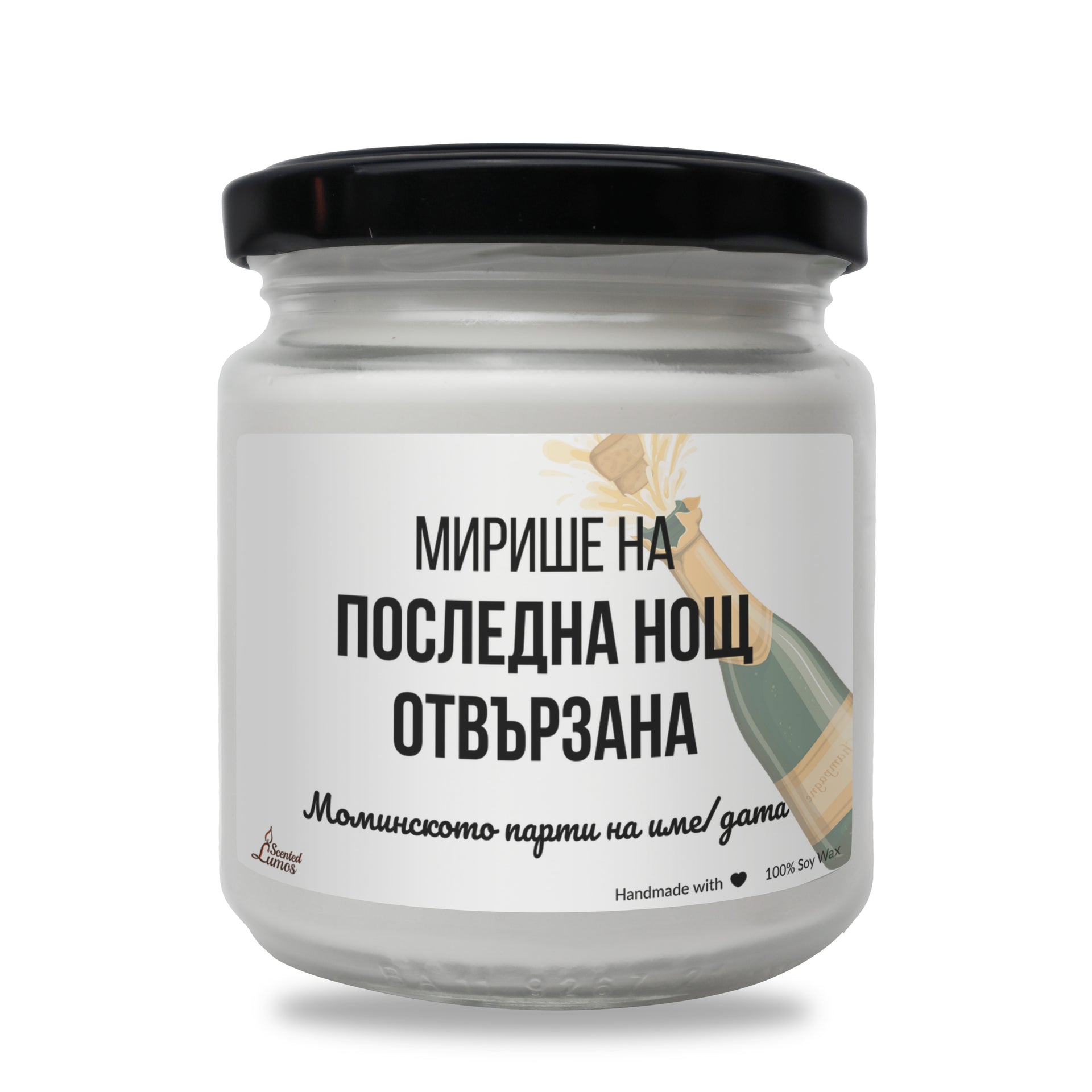 Оригинален подарък за Моминско парти с уникален дизайн: Мирише на последна нощ отвързана Ароматна Соева Свещ - Подарете с любов за 8-ми март, Рожден Ден, Имен Ден, годишнина или друг специален повод.