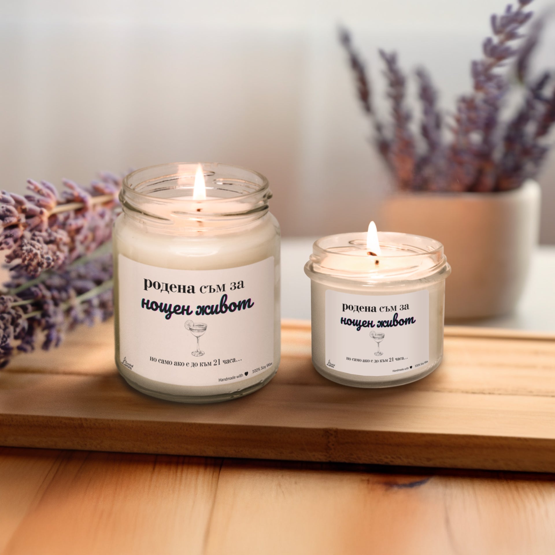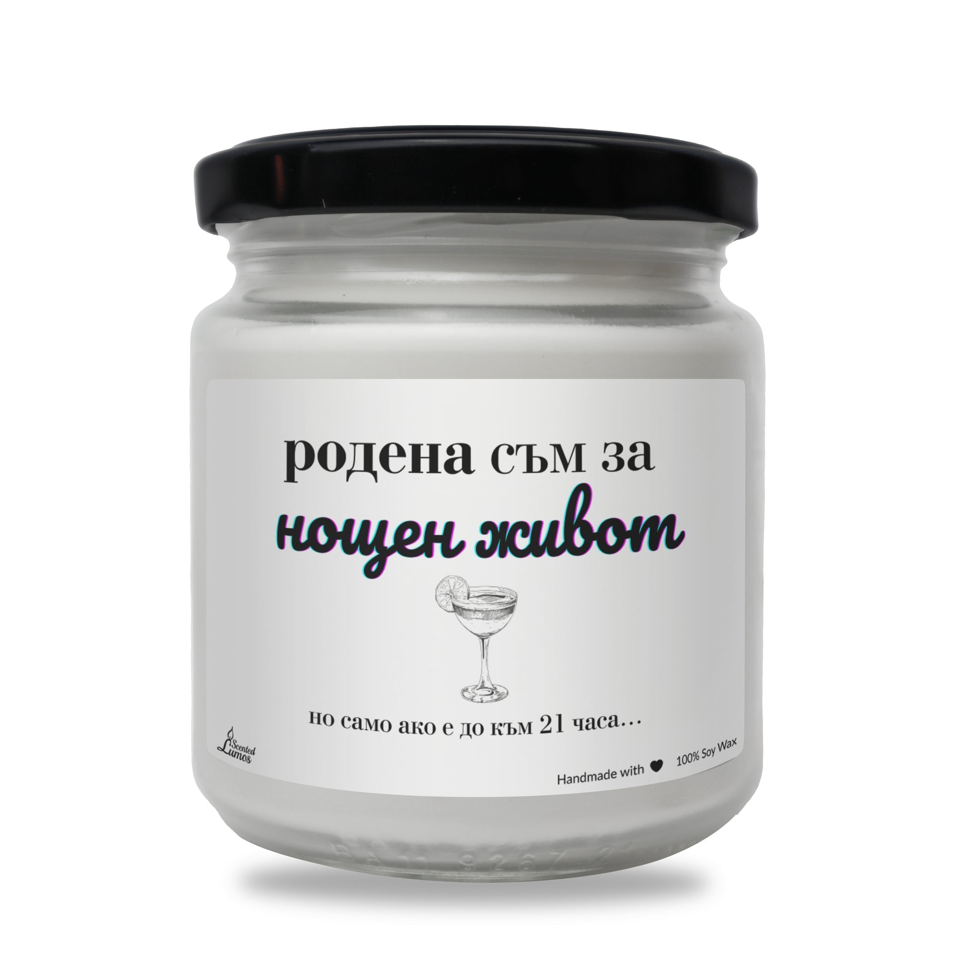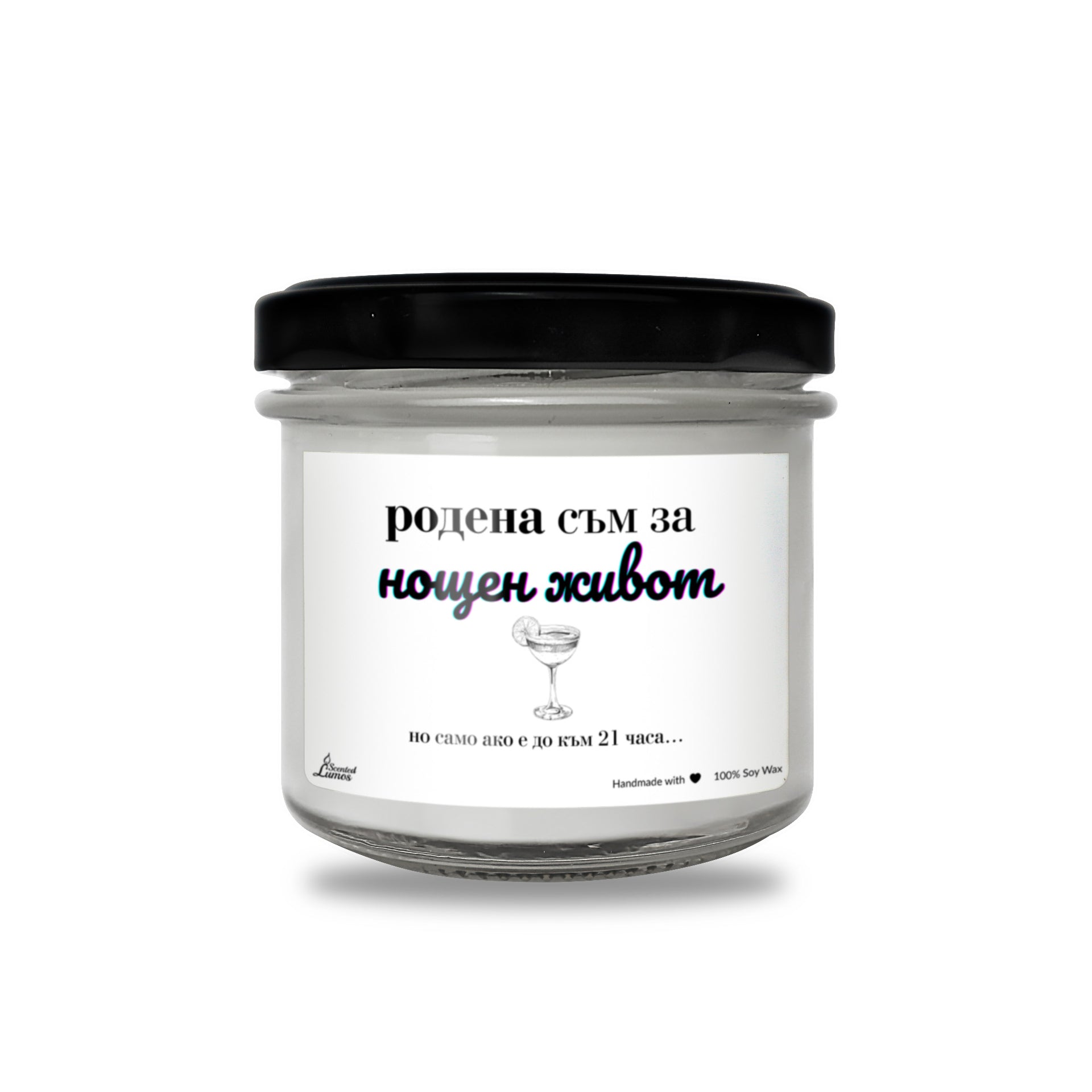 Родена съм за нощен живот...само ако е до 21 часа Ароматна соева свещ
