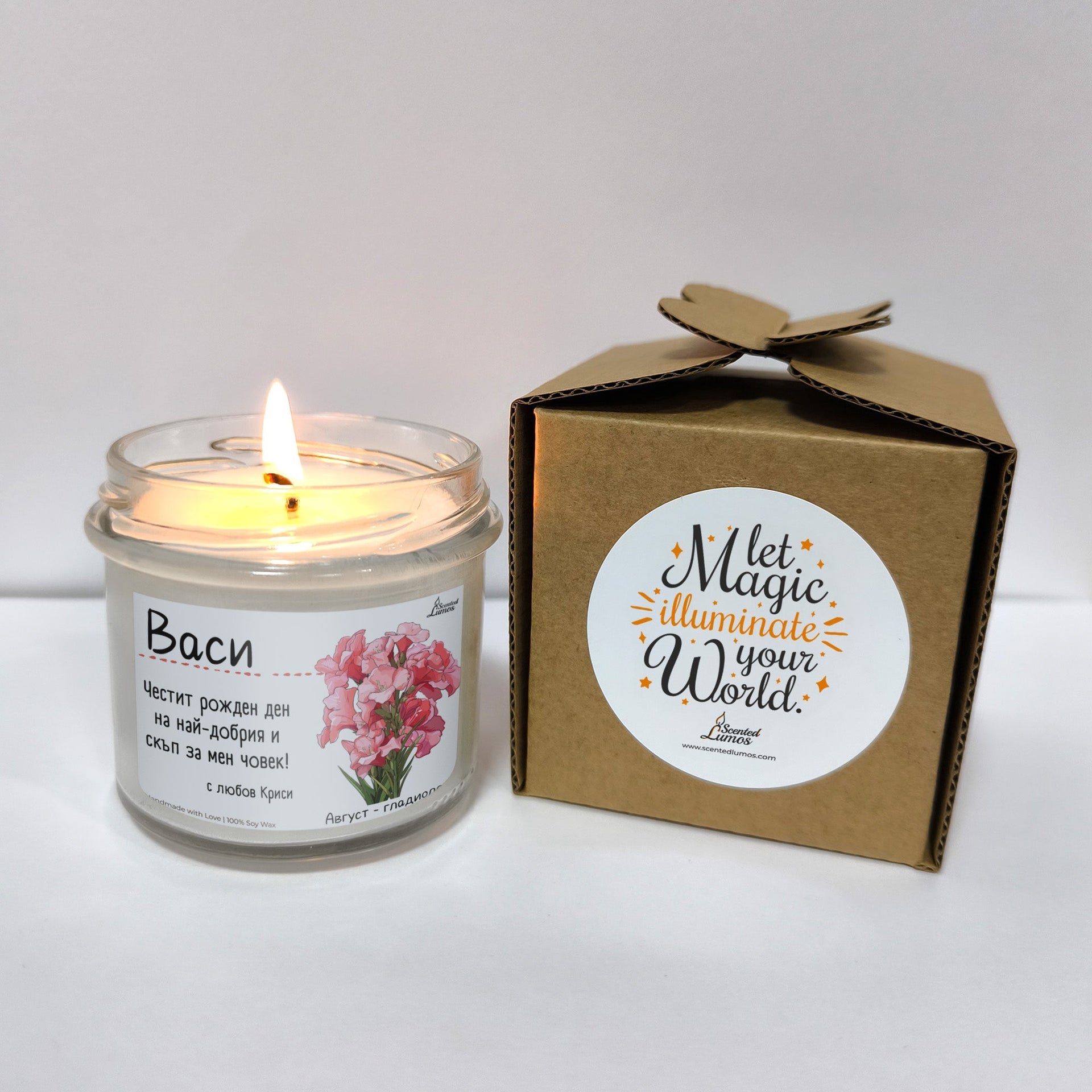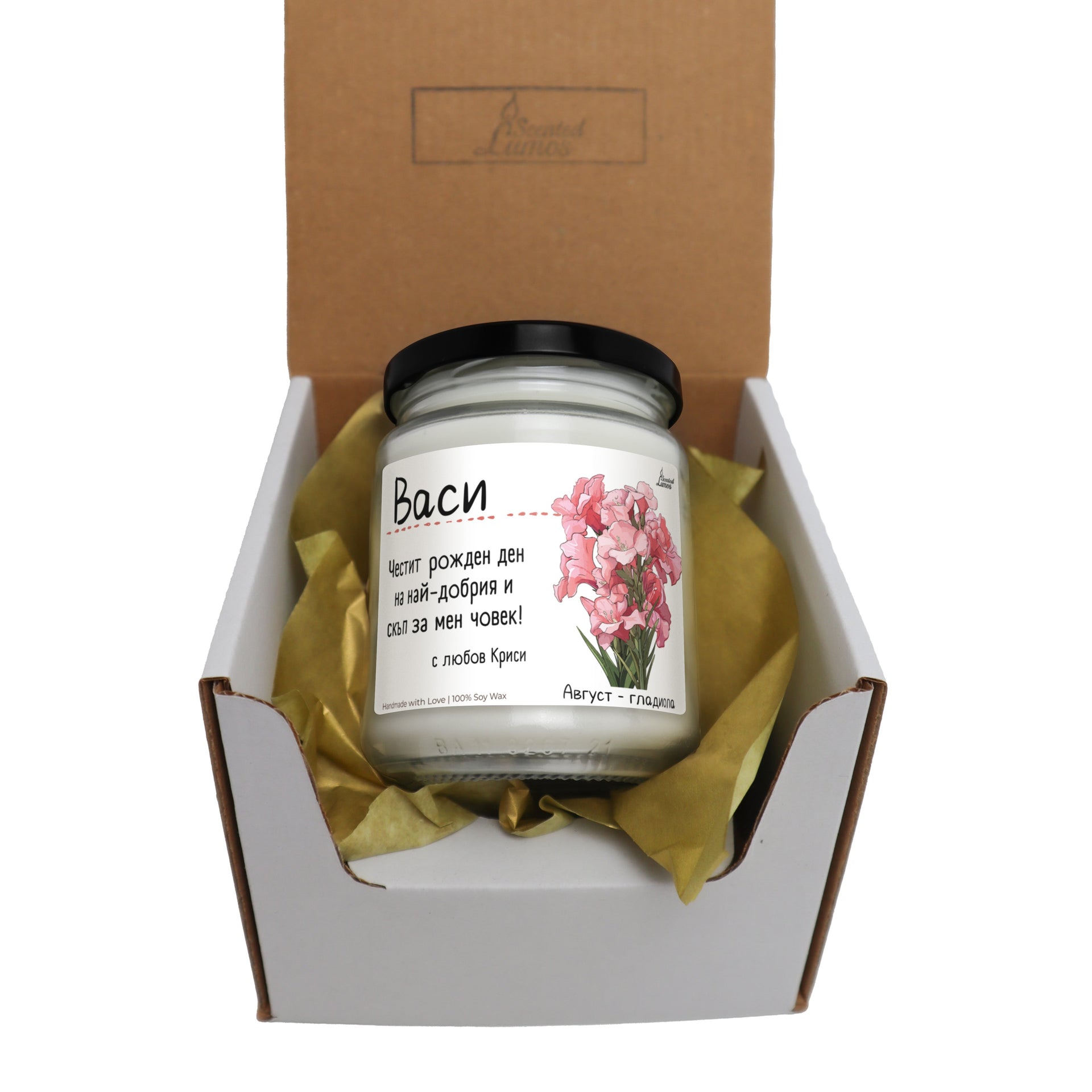 Рождено цвете Август - гладиола Ароматна Соева Свещ