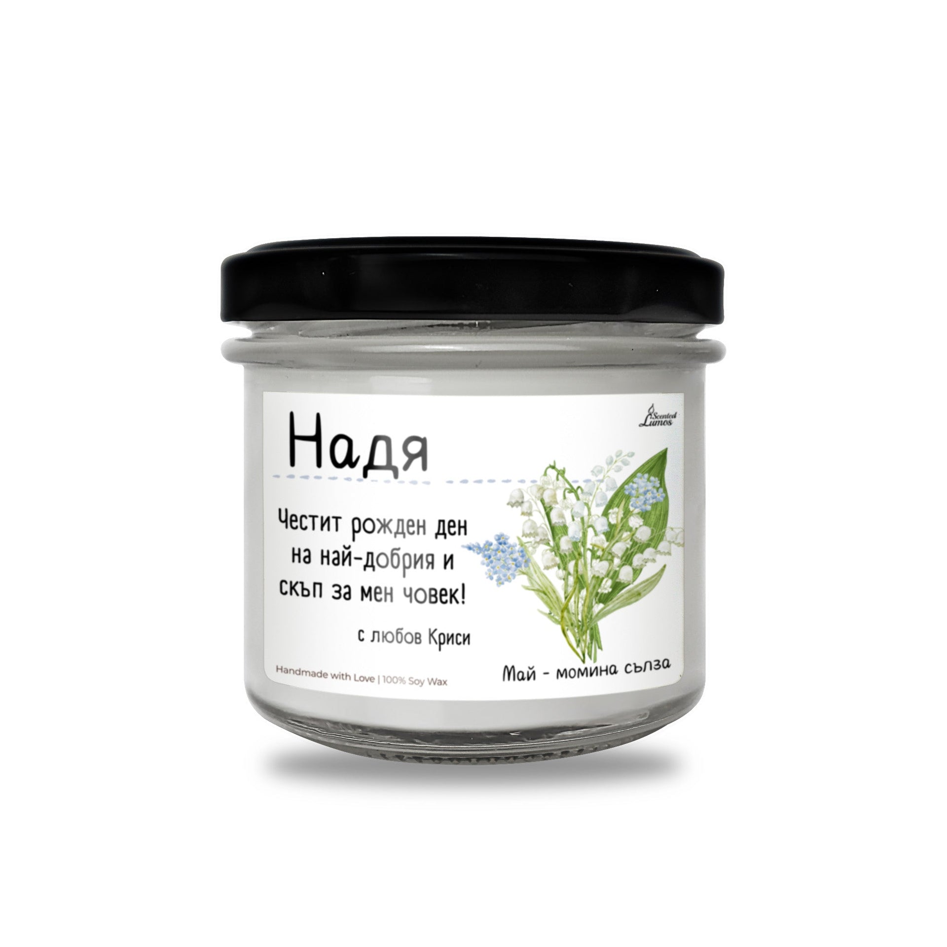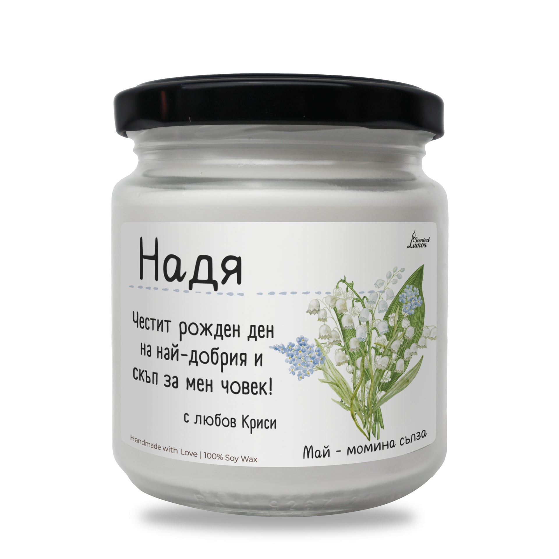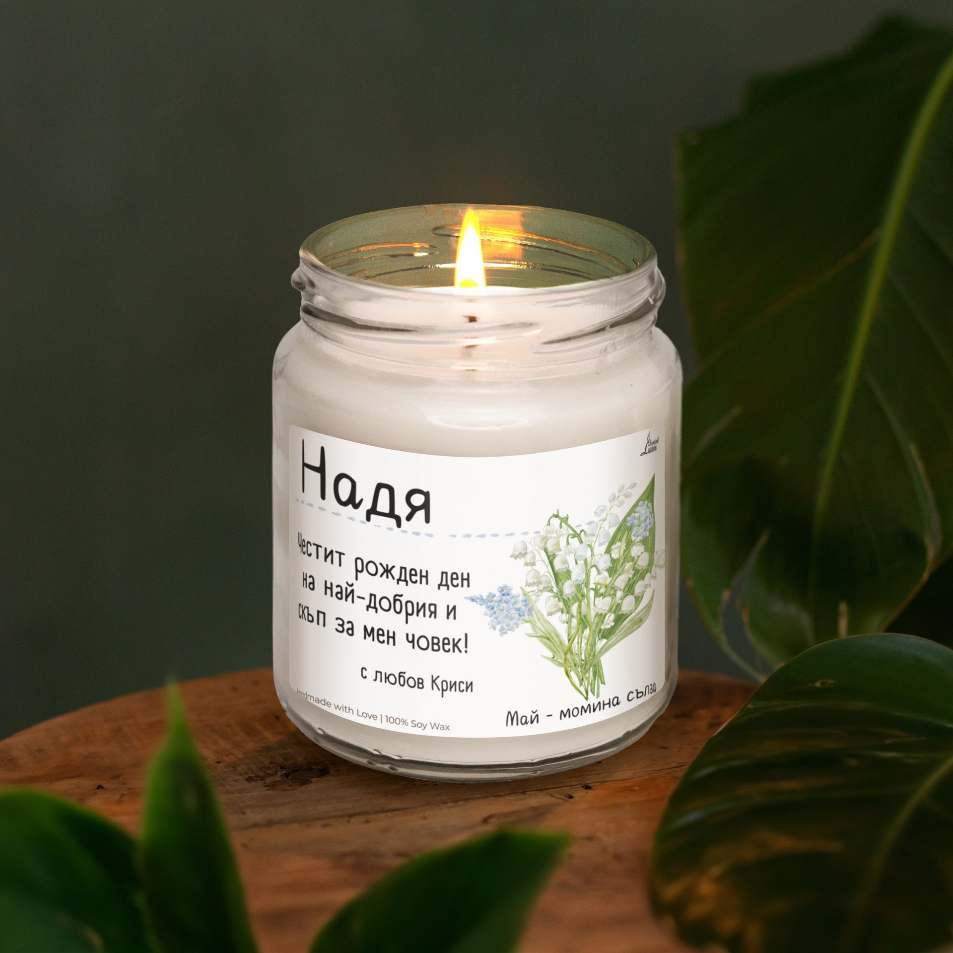 Рождено цвете Май- момина сълза Ароматна Соева Свещ