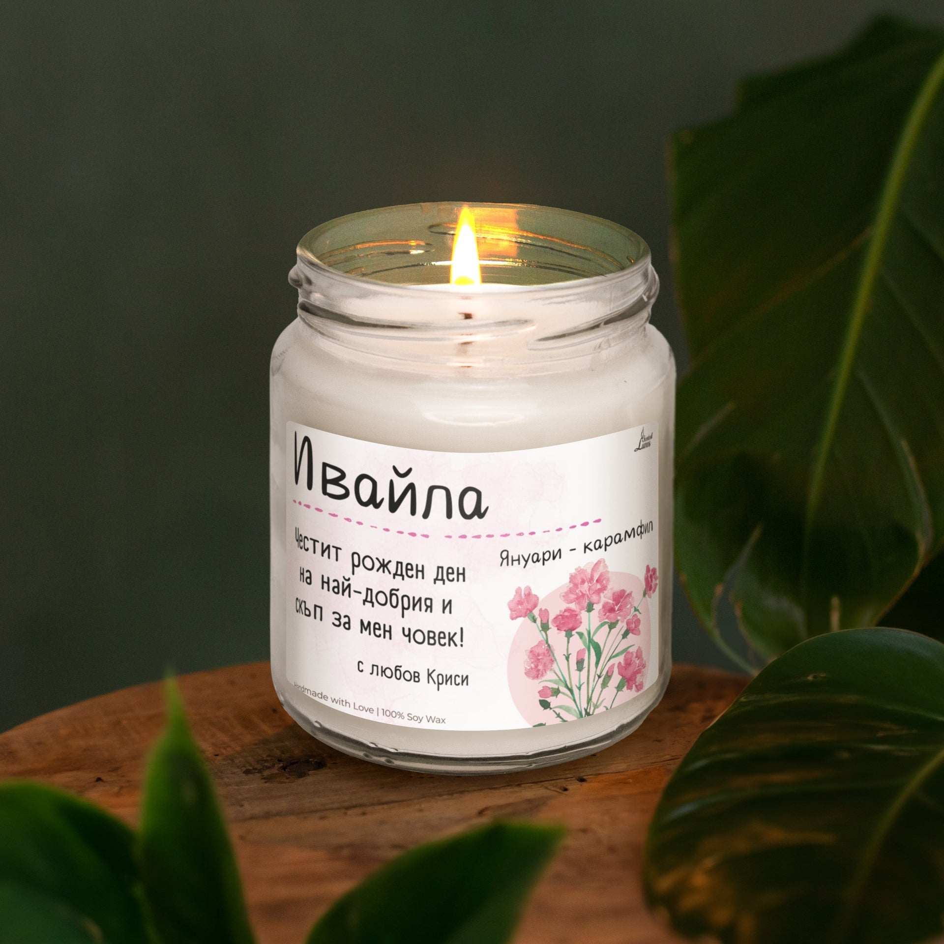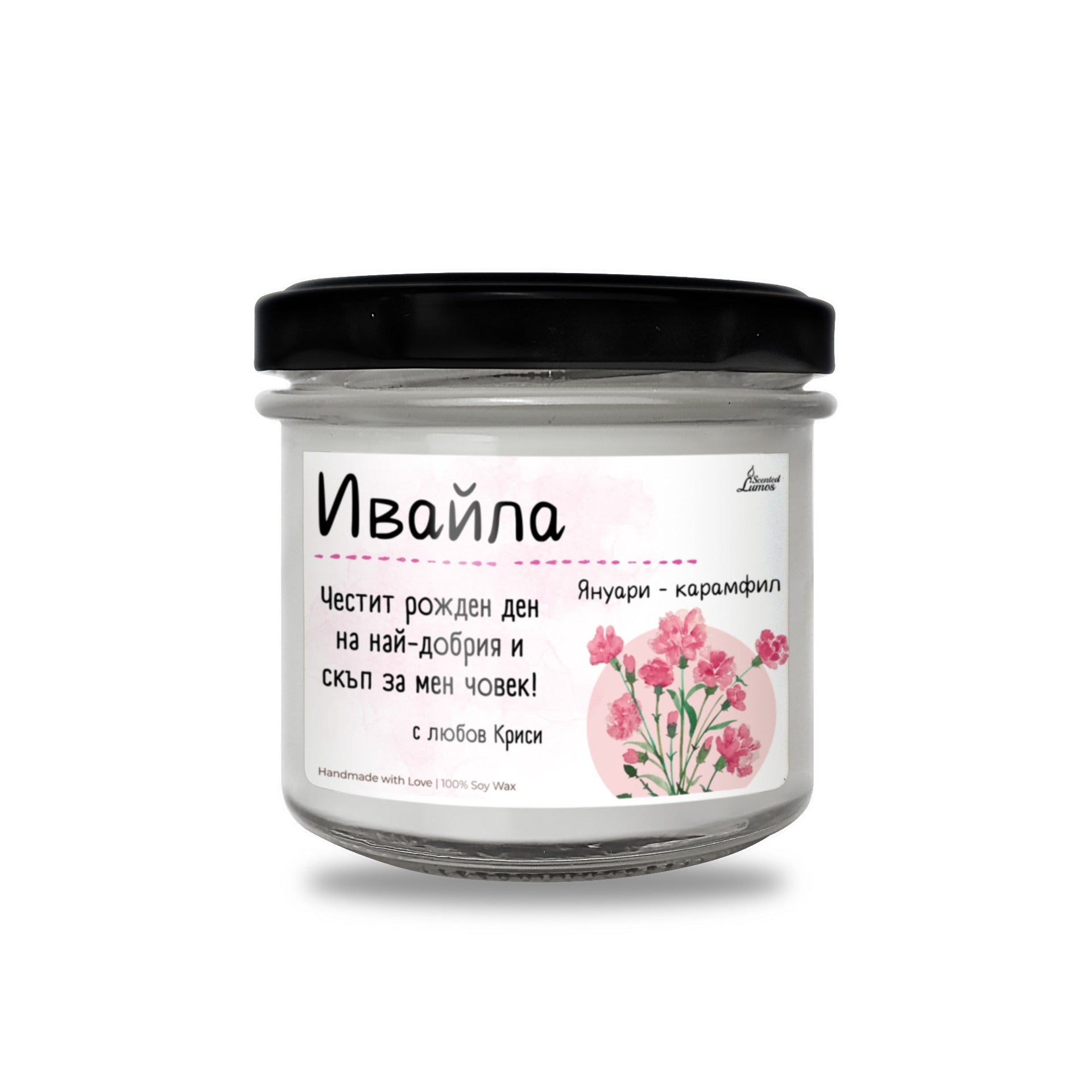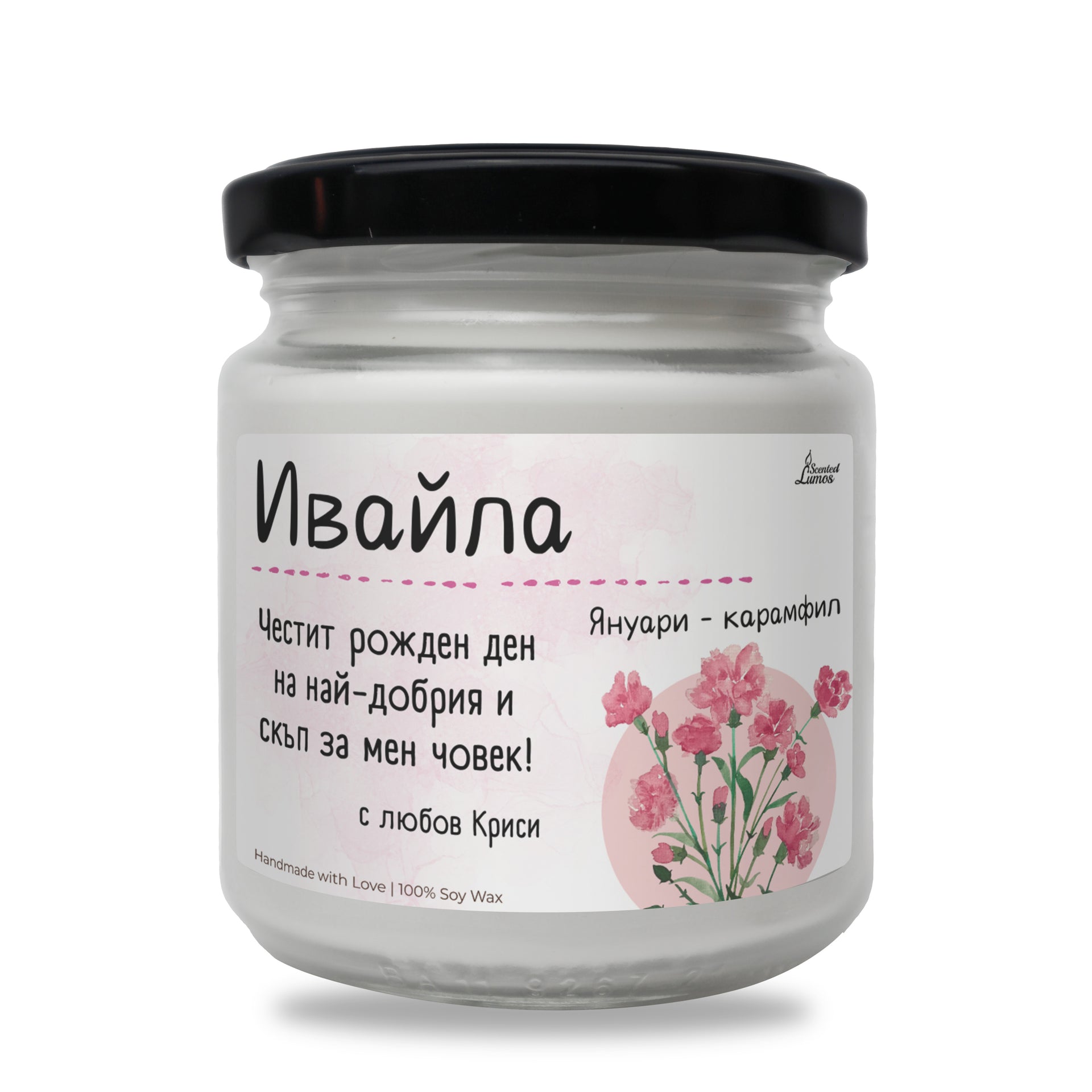 Рождено цвете Януари - карамфил Ароматна Соева Свещ