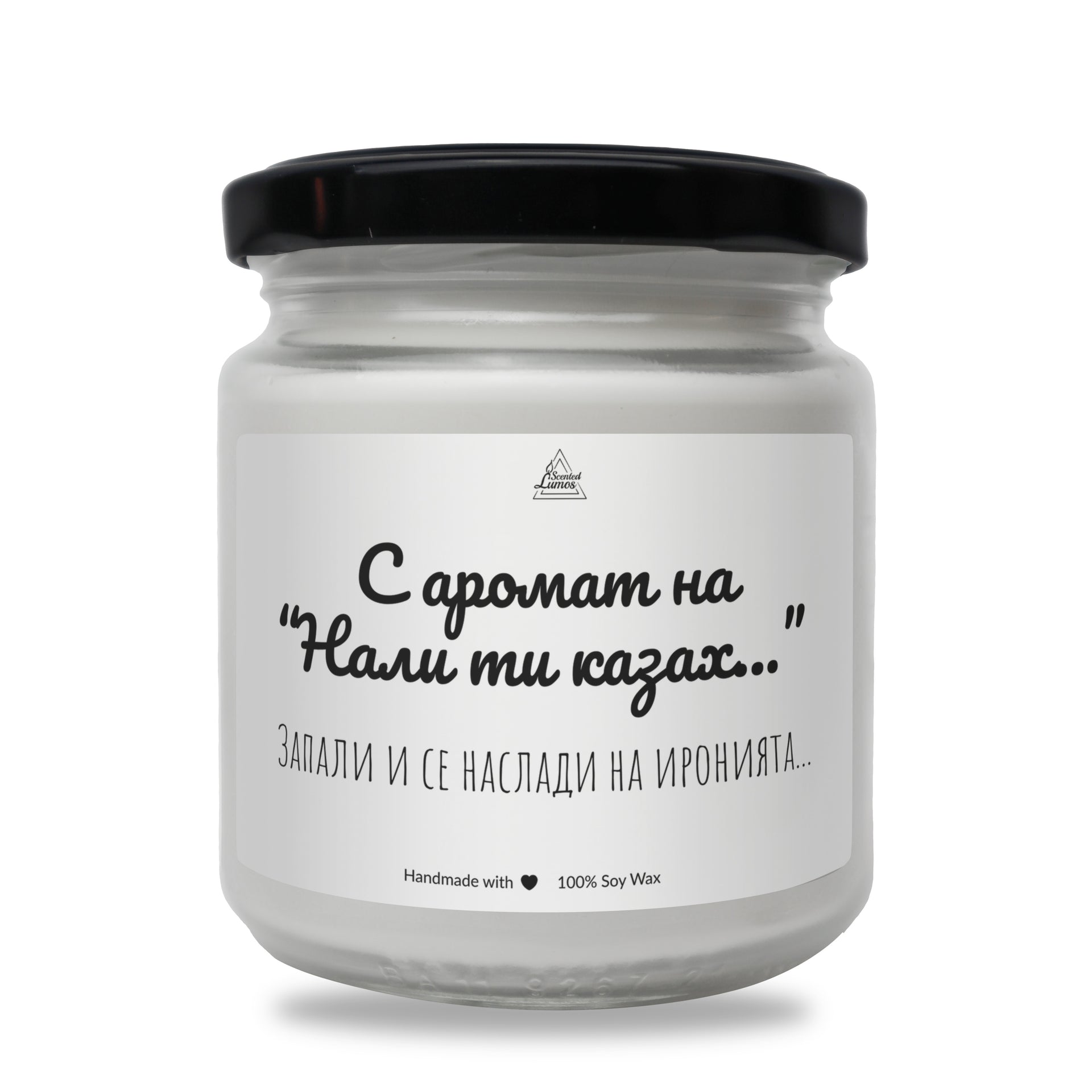 Оригинален и закачлив подарък за любим човек със забавен дизайн: С аромат на "Нали ти казах...". Запали и се наслади на иронията...
