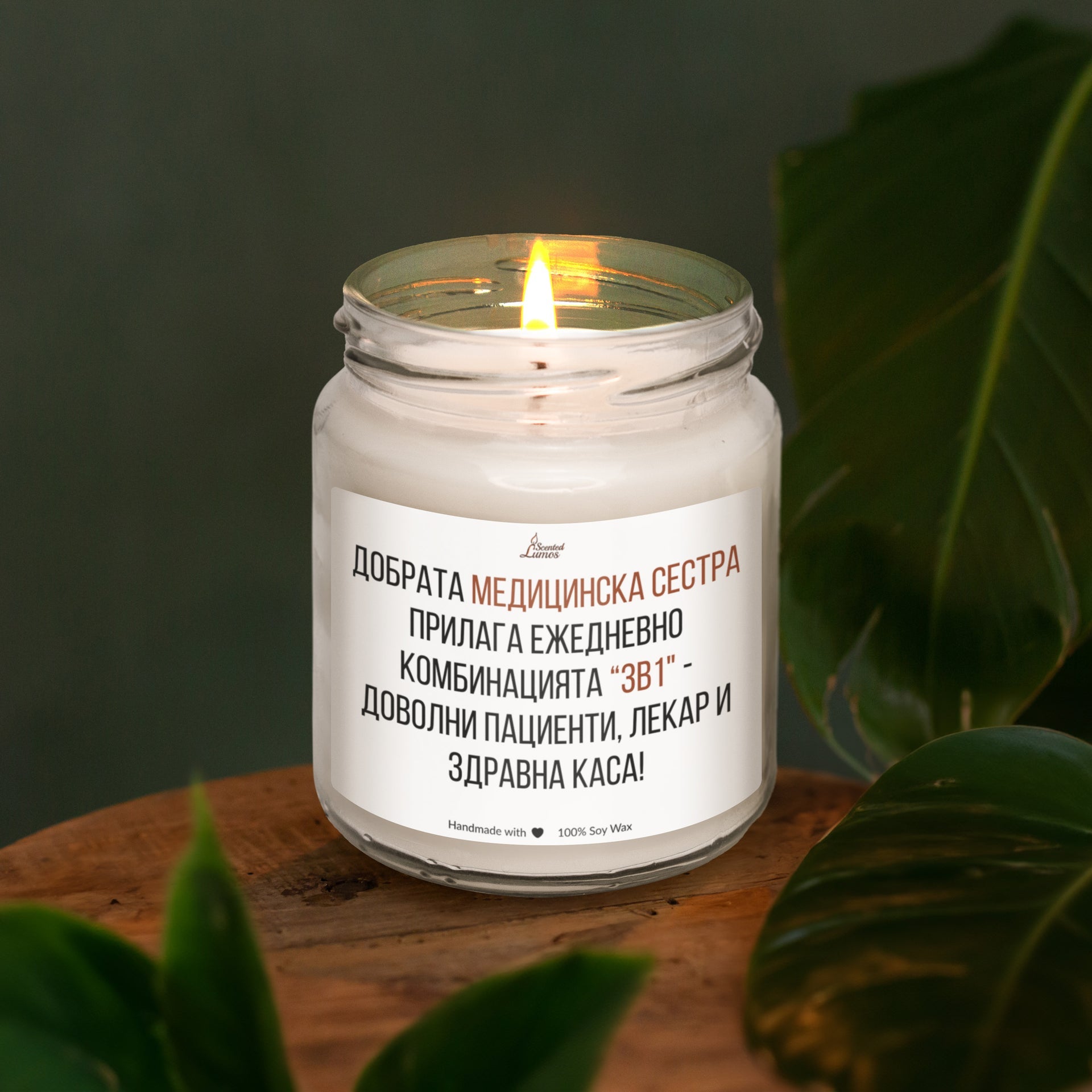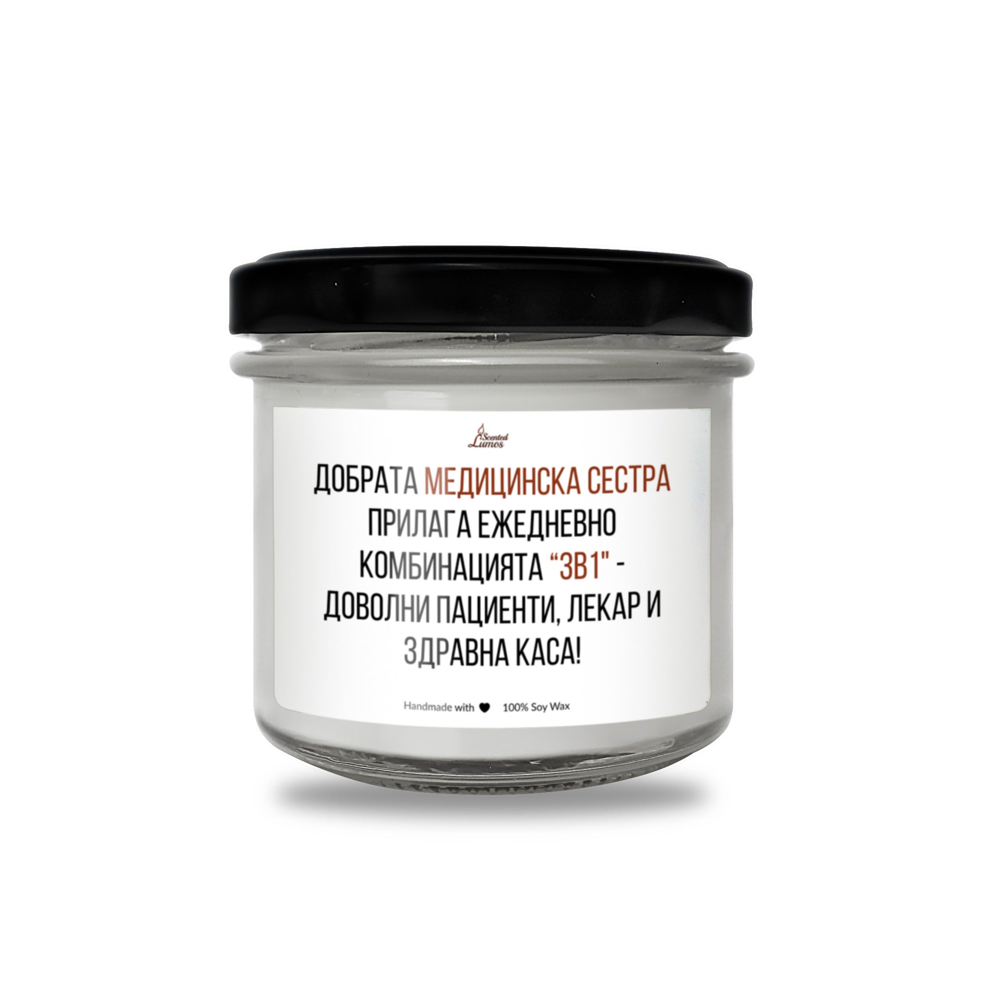 Оригинален подарък за Медицинска сестра с интересен дизайн: Добрата медицинска сестра прилага ежедневно комбинацията 3в1 - доволни пациенти, лекар и здравна каса!