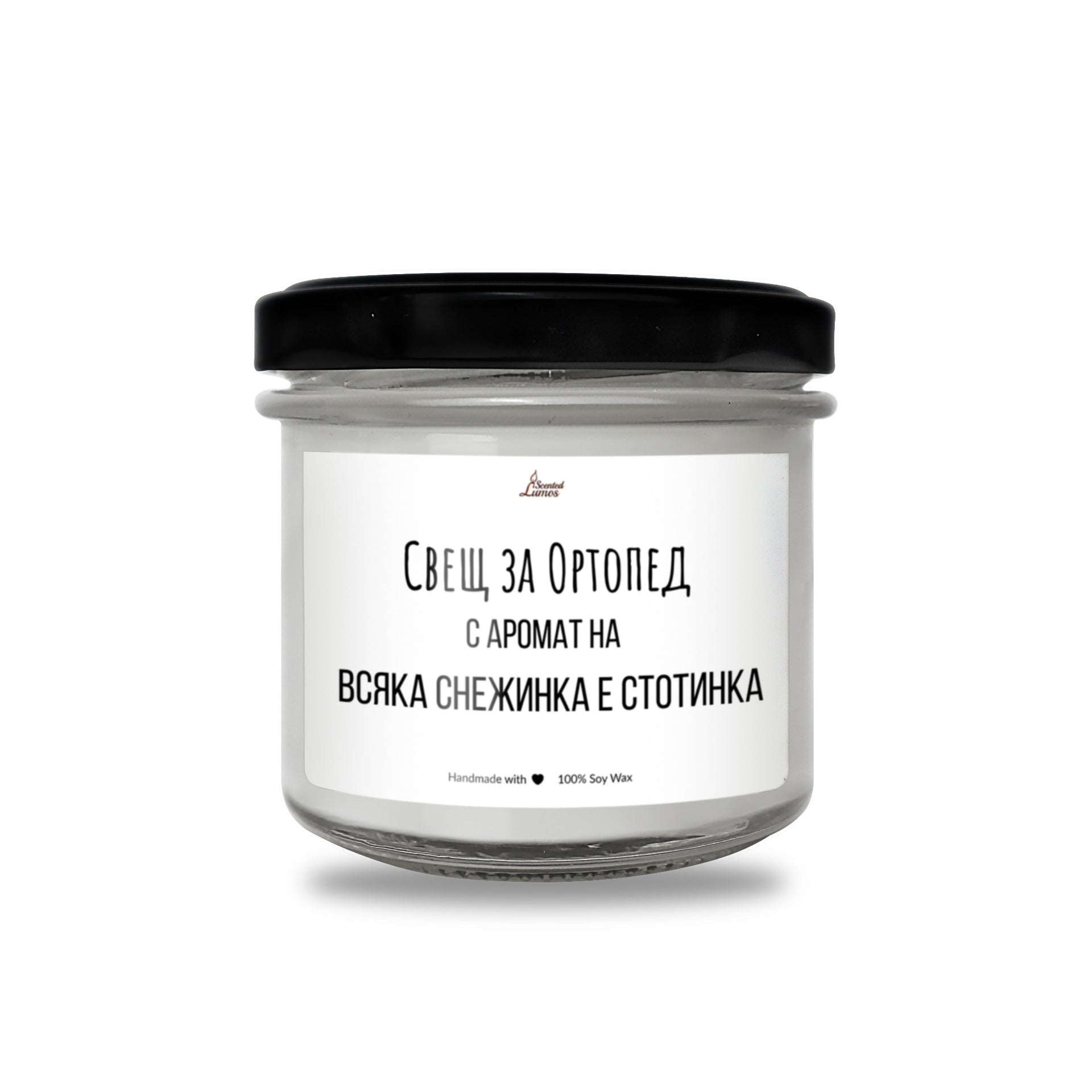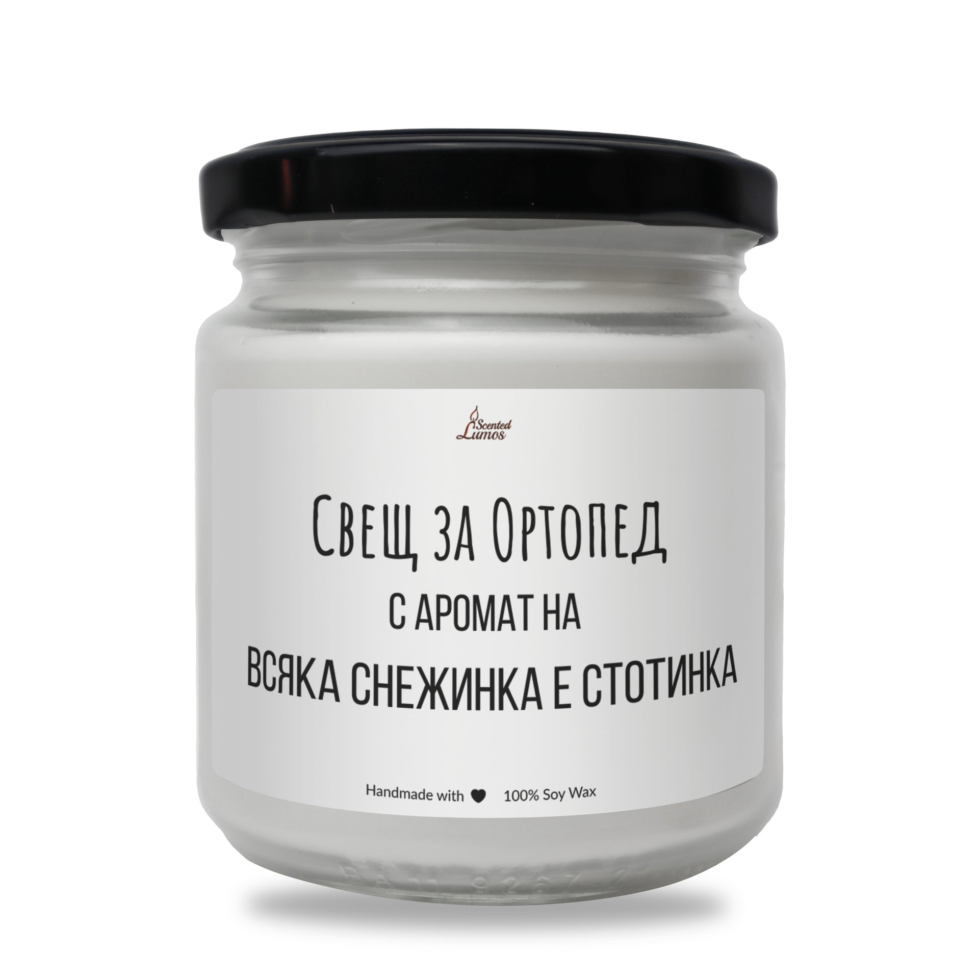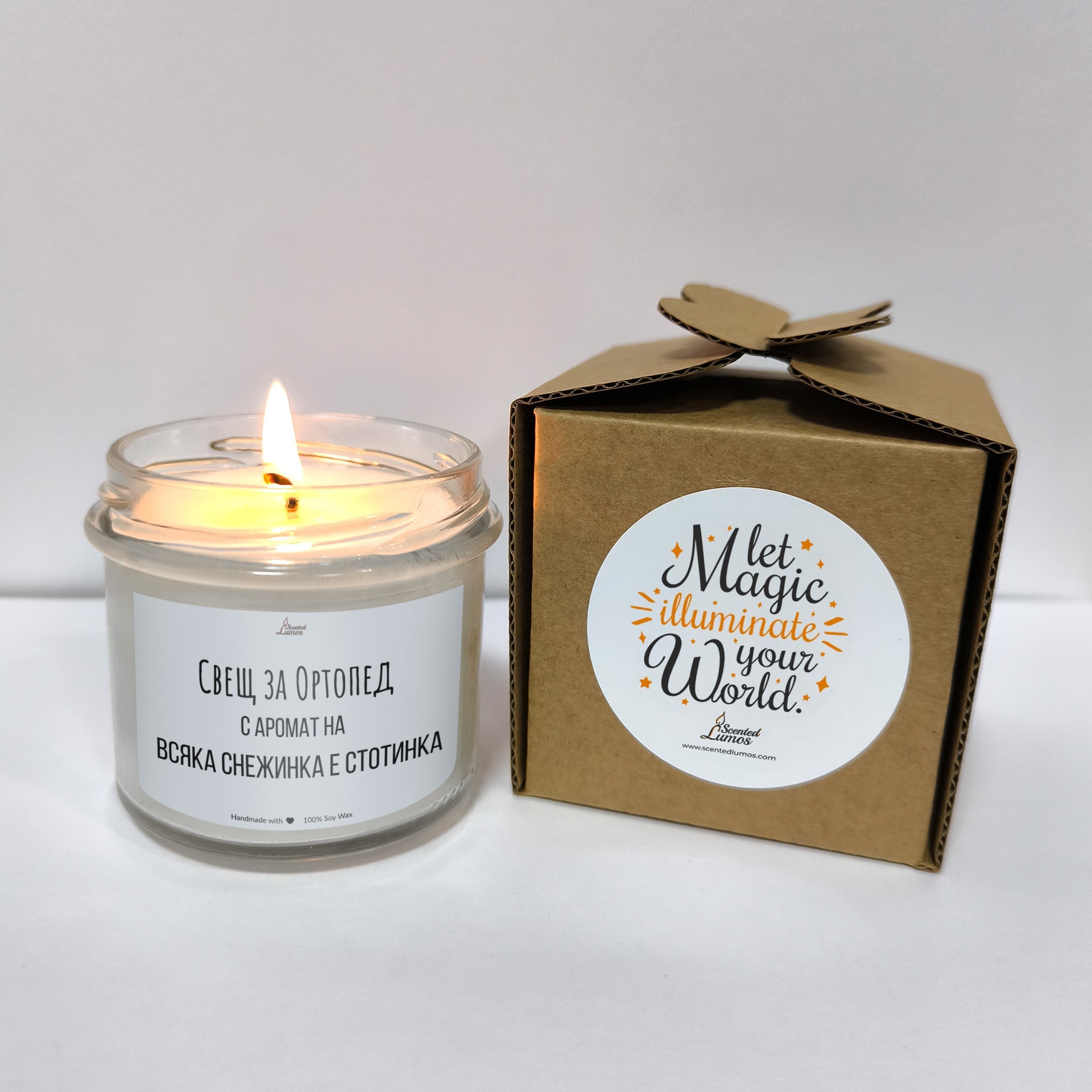 Оригинален подарък за Ортопед с интересен дизайн: Свещ за ортопед - с аромат на всяка снежинка е стотинка.