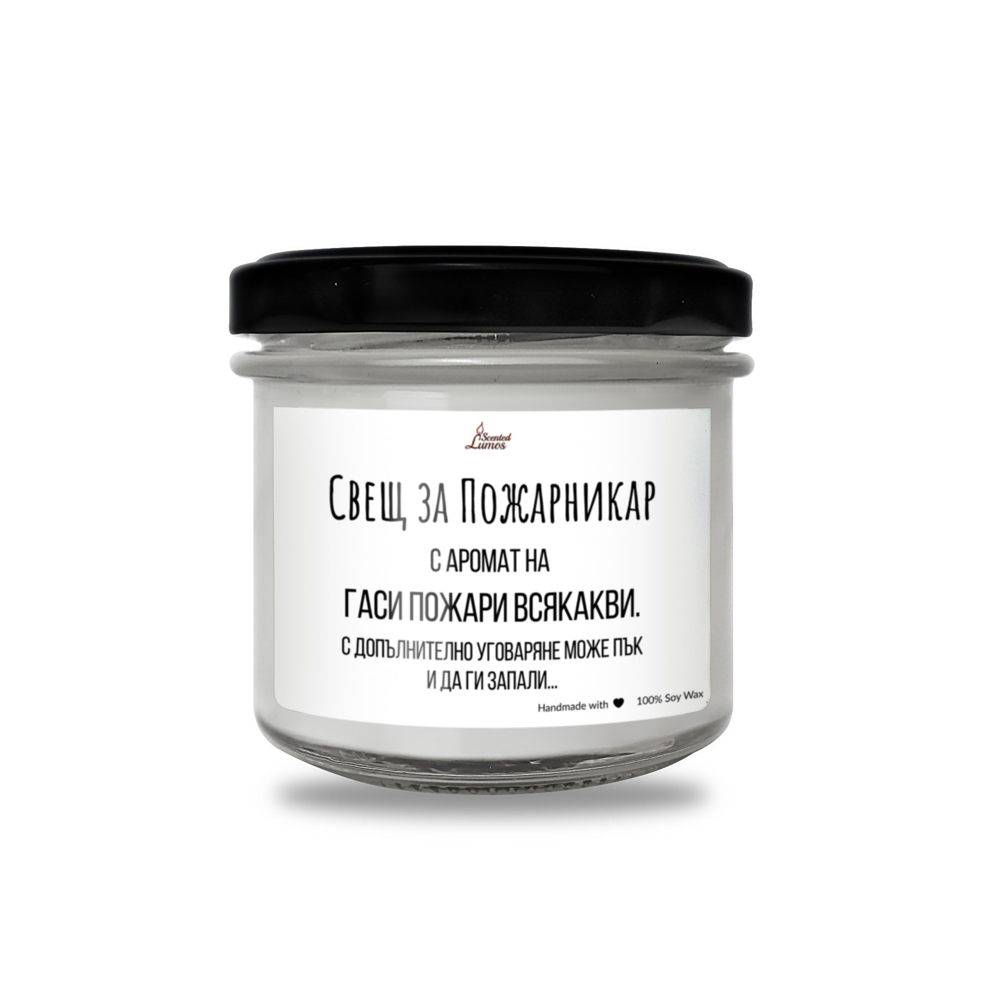 Оригинален и закачлив подарък за Пожарникар със забавен дизайн: Свещ за Пожарникар - С аромат на: гаси пожари всякакви.