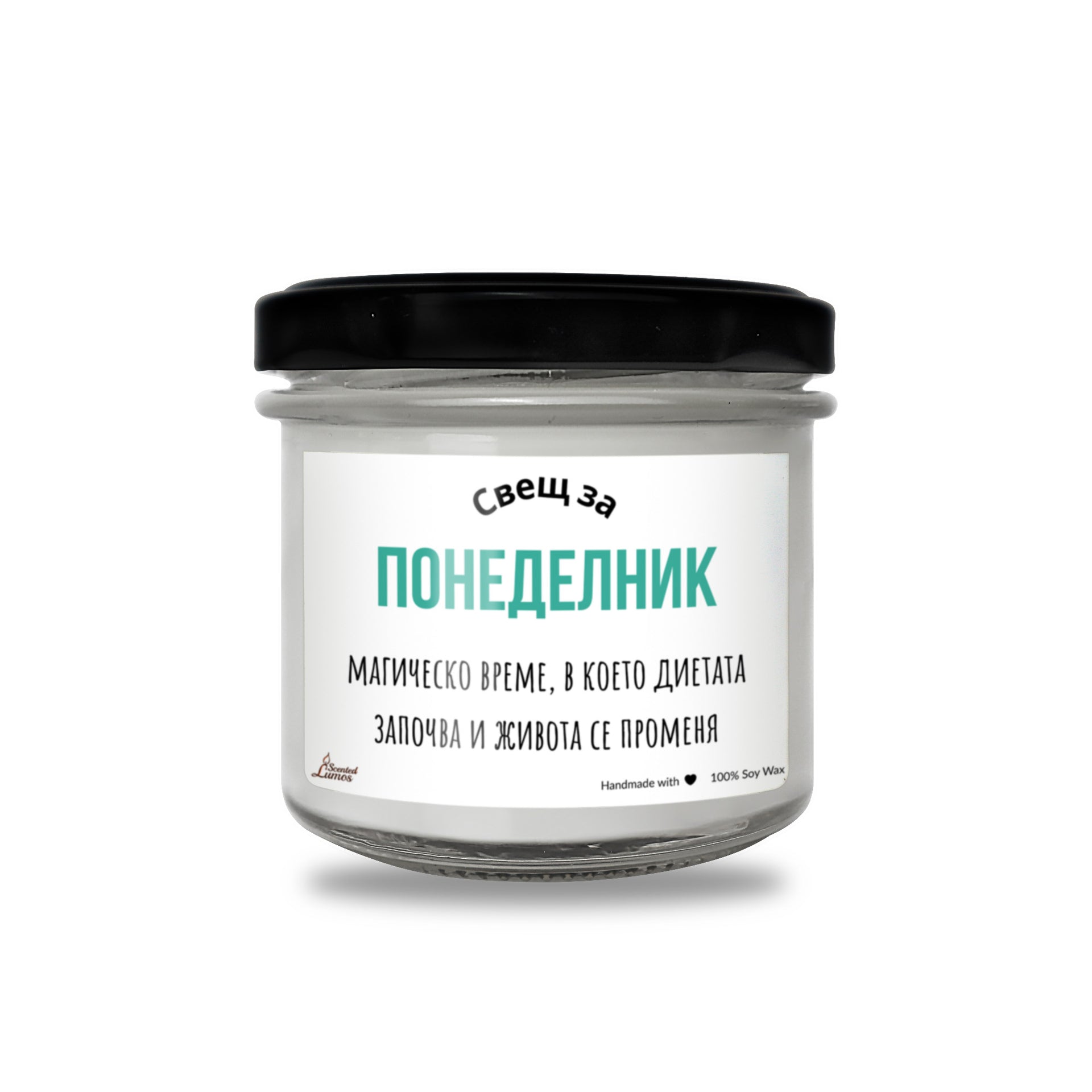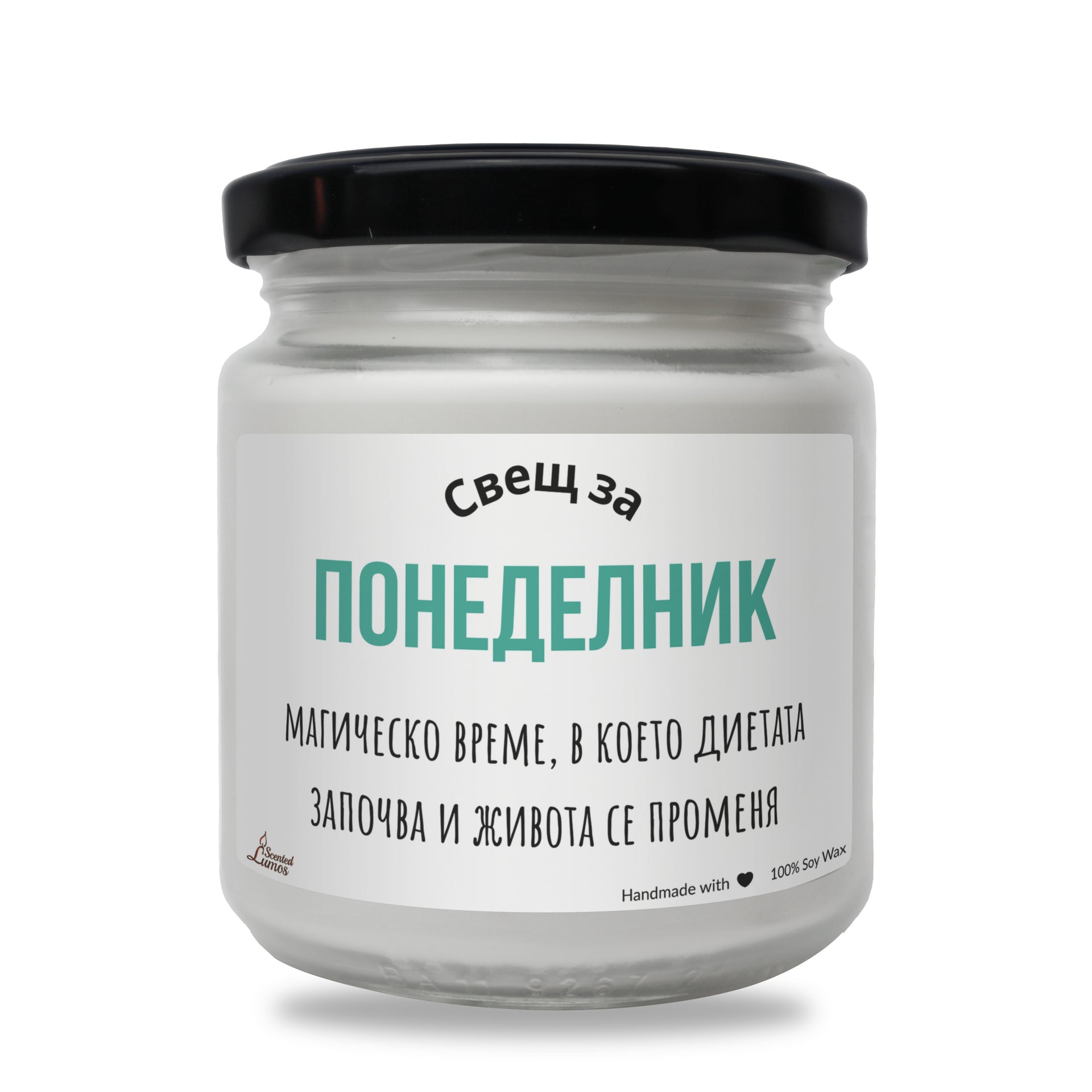 Оригинален и закачлив подарък за приятел, любим човек, колежка със забавен дизайн: Свещ за понеделник - Магическо време, в което диетата започва и живота се променя.