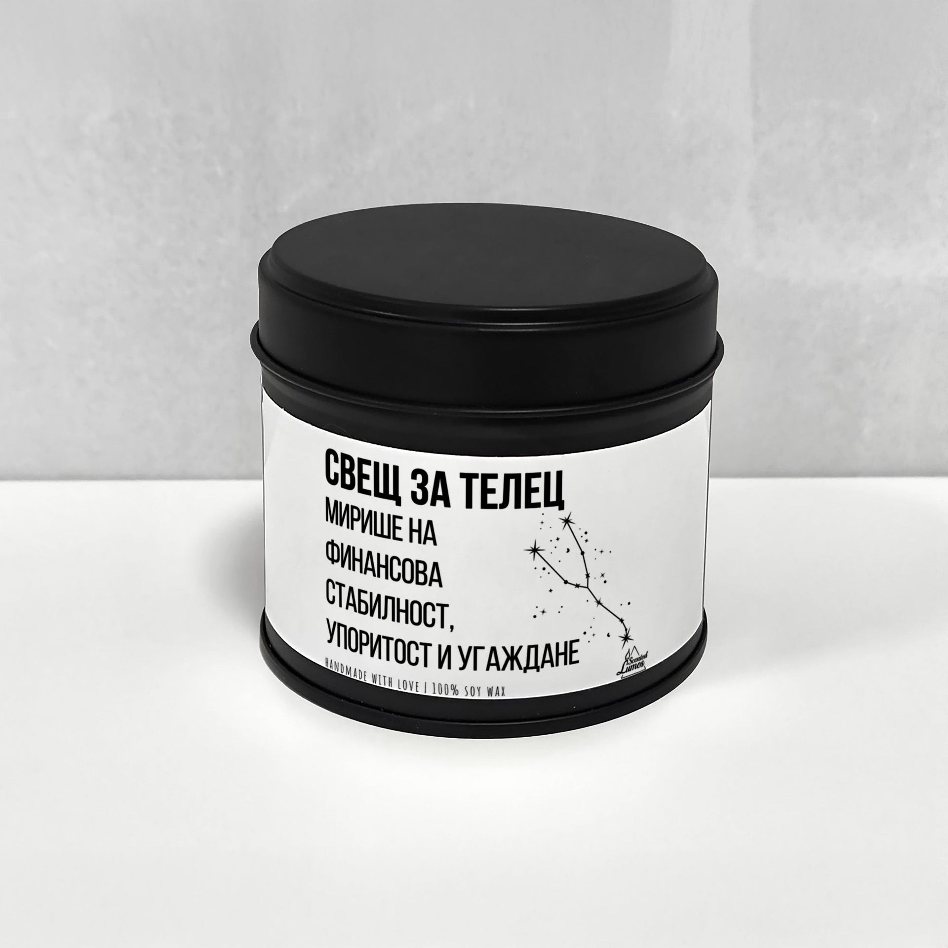 Оригинален подарък за всяка зодия с уникален дизайн: Свещ за Телец - Мирише на... Ароматна Соева Свещ - Подарете с любов за 8-ми март, Коледа, Рожден Ден, Имен Ден, годишнина или друг специален повод.