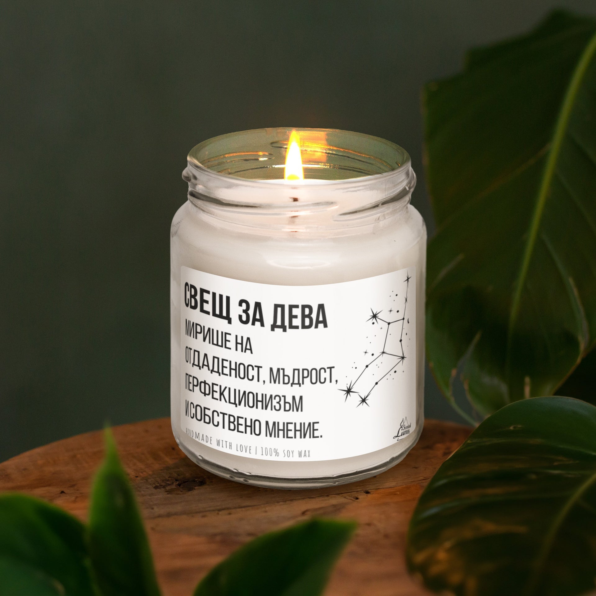 Оригинален подарък за Зодии с уникален дизайн: Свещ за Дева Ароматна Соева Свещ - Подарете с любов за 8-ми март, Рожден Ден, Имен Ден, годишнина или друг специален повод.