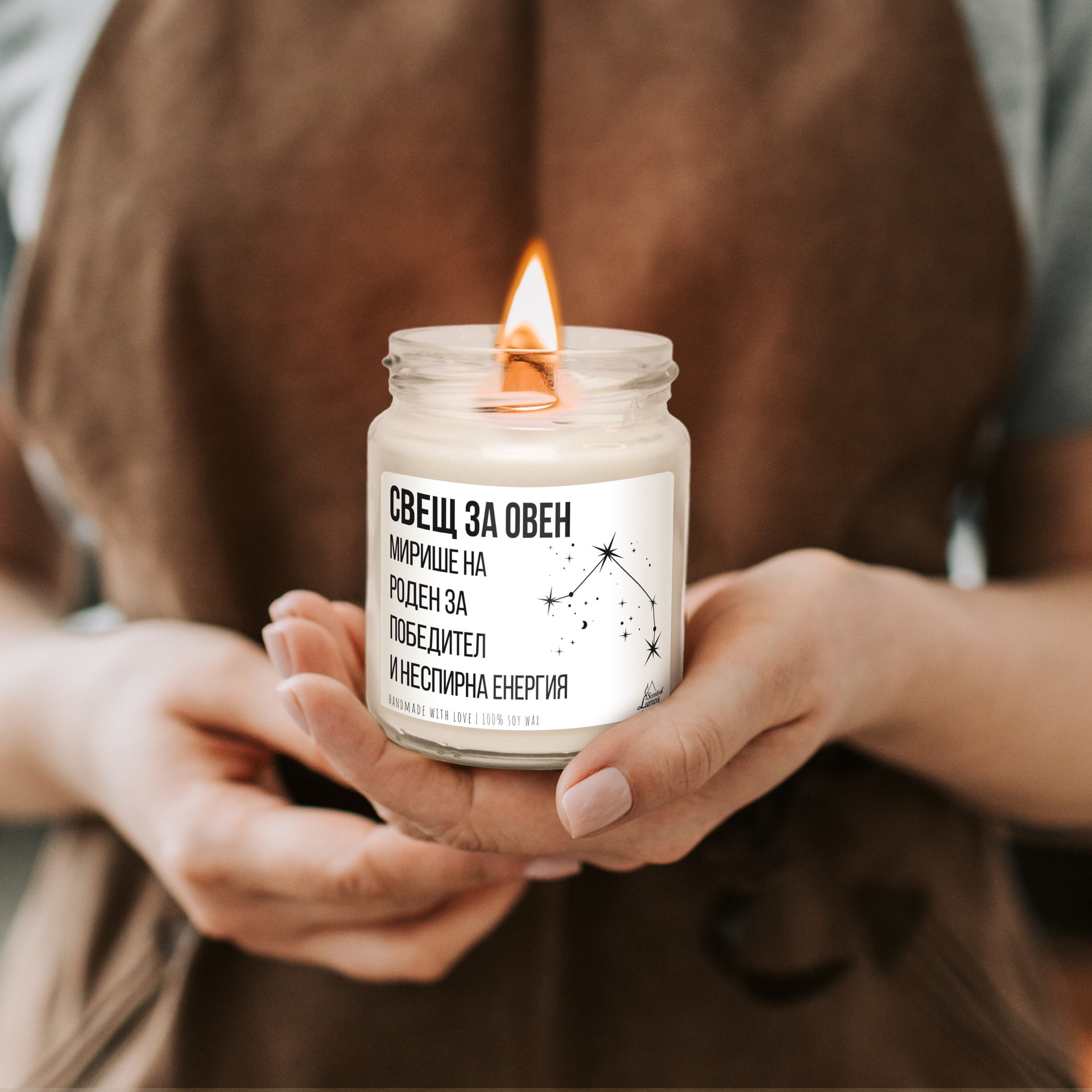 Оригинален подарък за зодия Овен с уникален дизайн: Свещ за Овен - Мирише на роден за победител и неспирна енергия. Подарете с любов за 8-ми март, Коледа, Рожден Ден, Имен Ден, годишнина или друг специален повод.