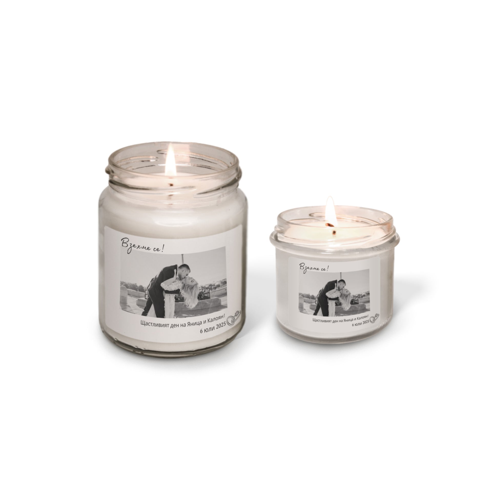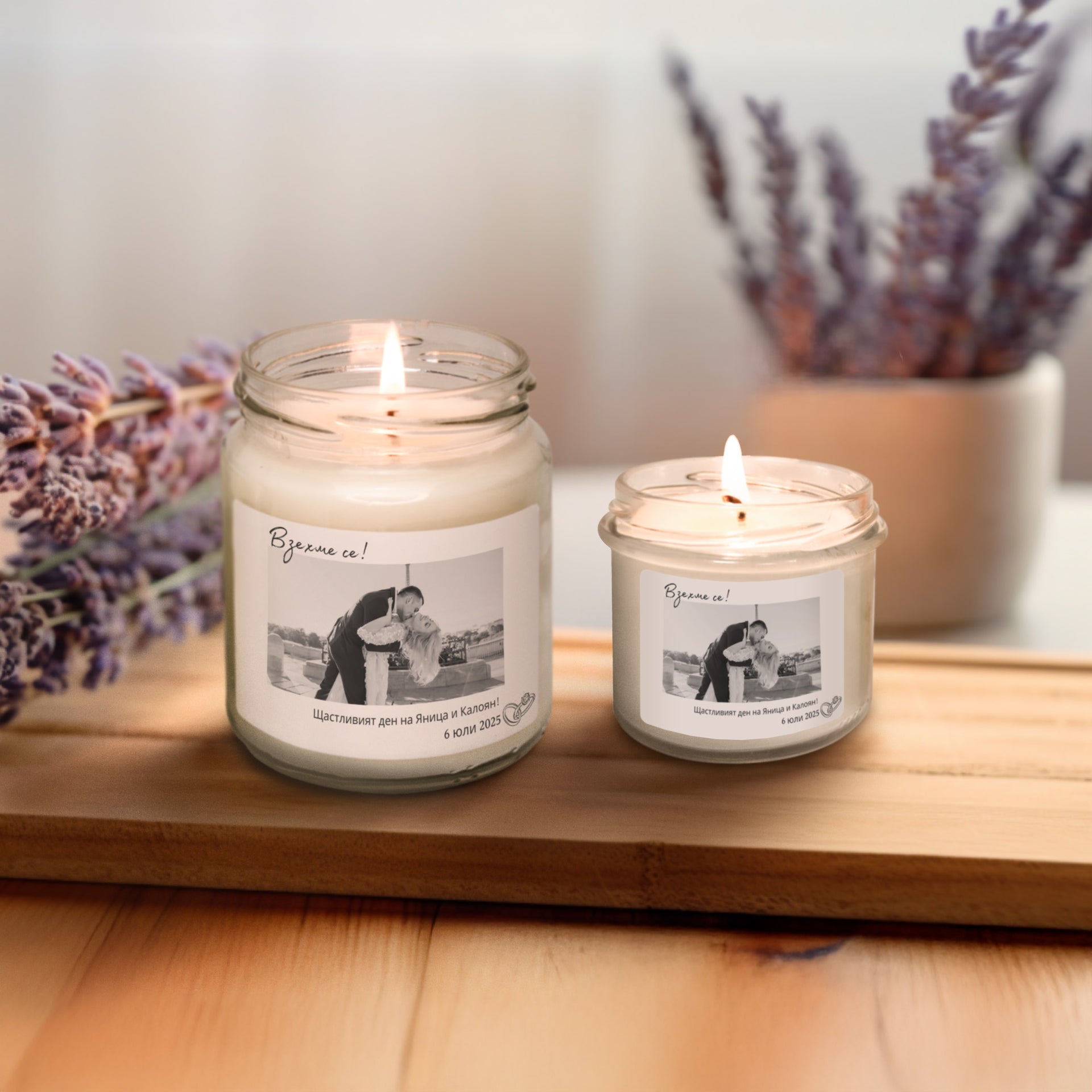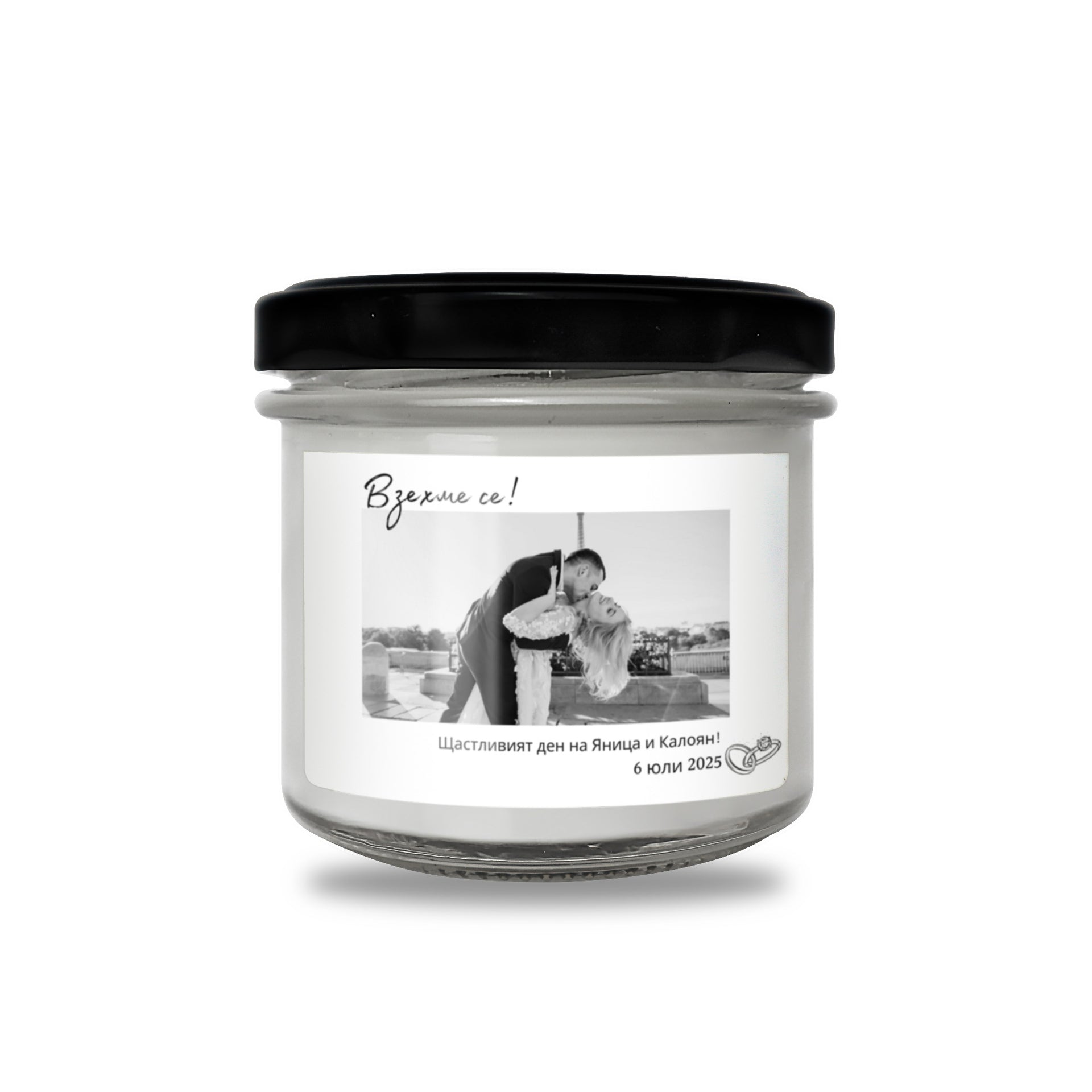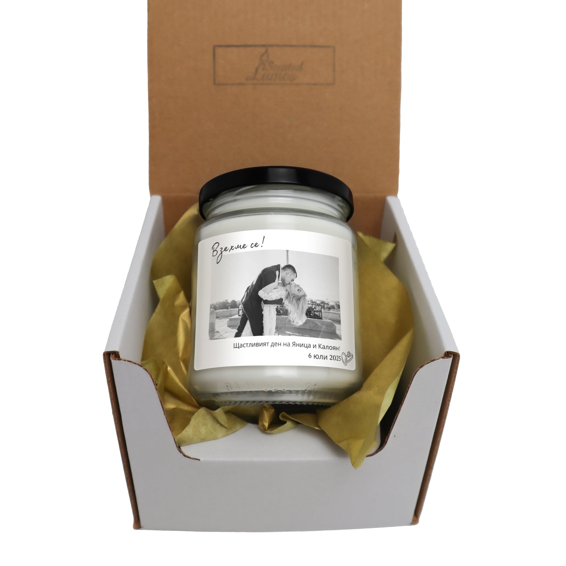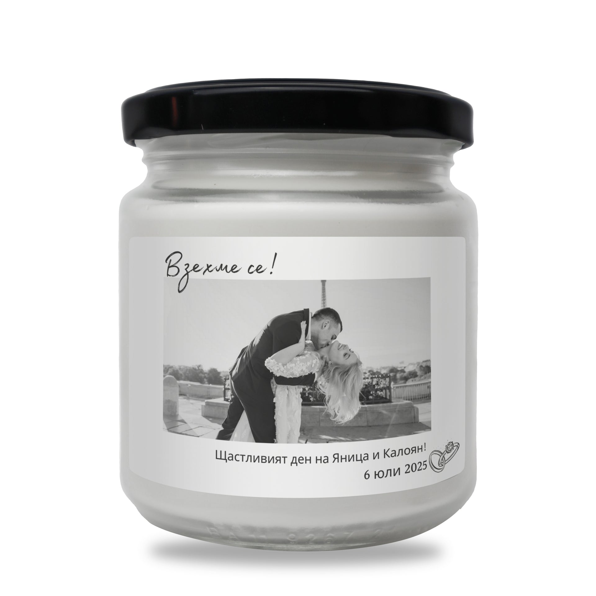 Взехме се! Персонализирана Ароматна Соева Свещ за Сватба