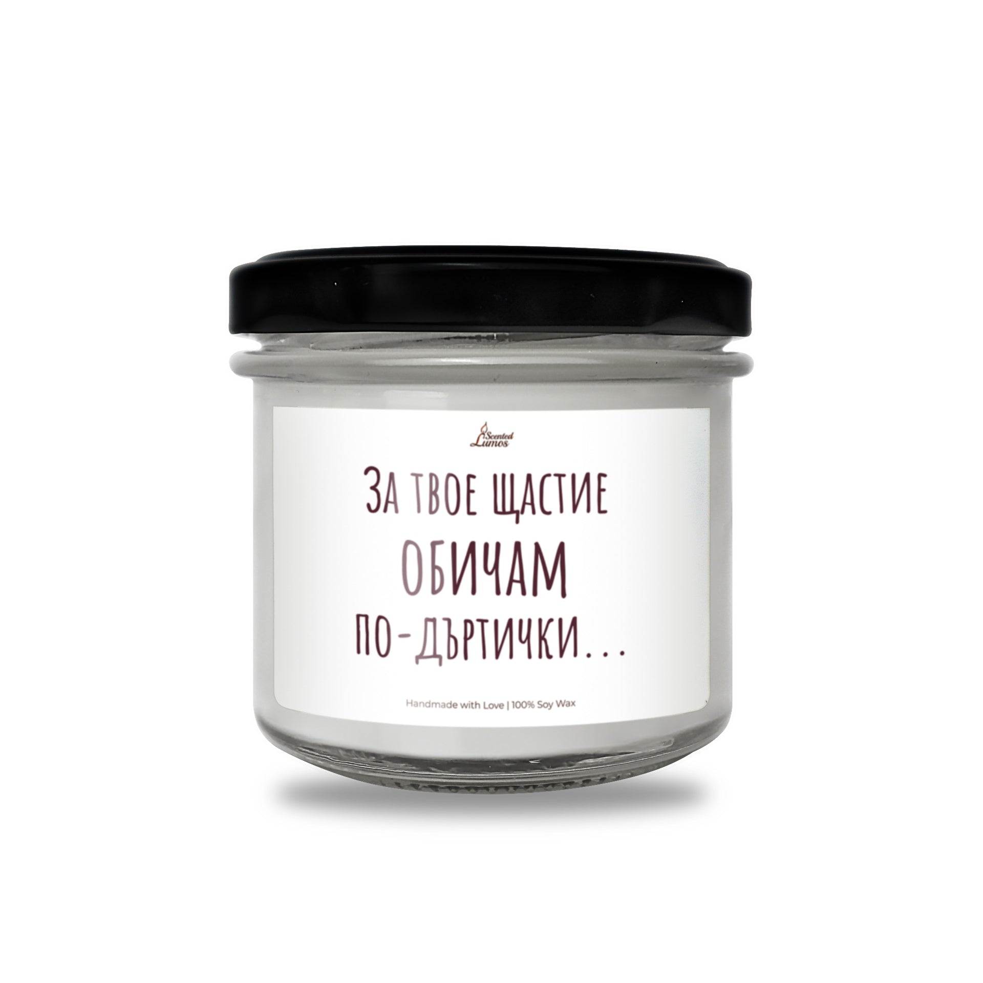 За твое щастие обичам по-дъртички... Ароматна соева свещ за рожден ден за него