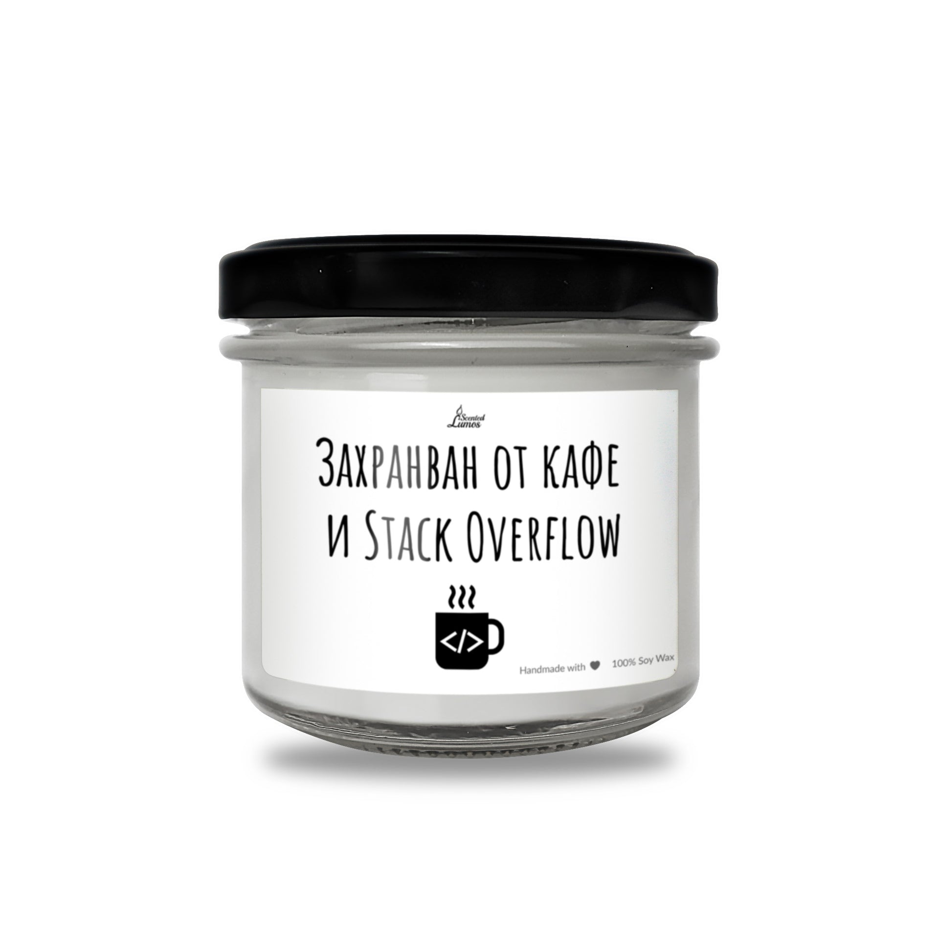 Захранван от кафе и Stack Overflow Ароматна соева свещ за програмист